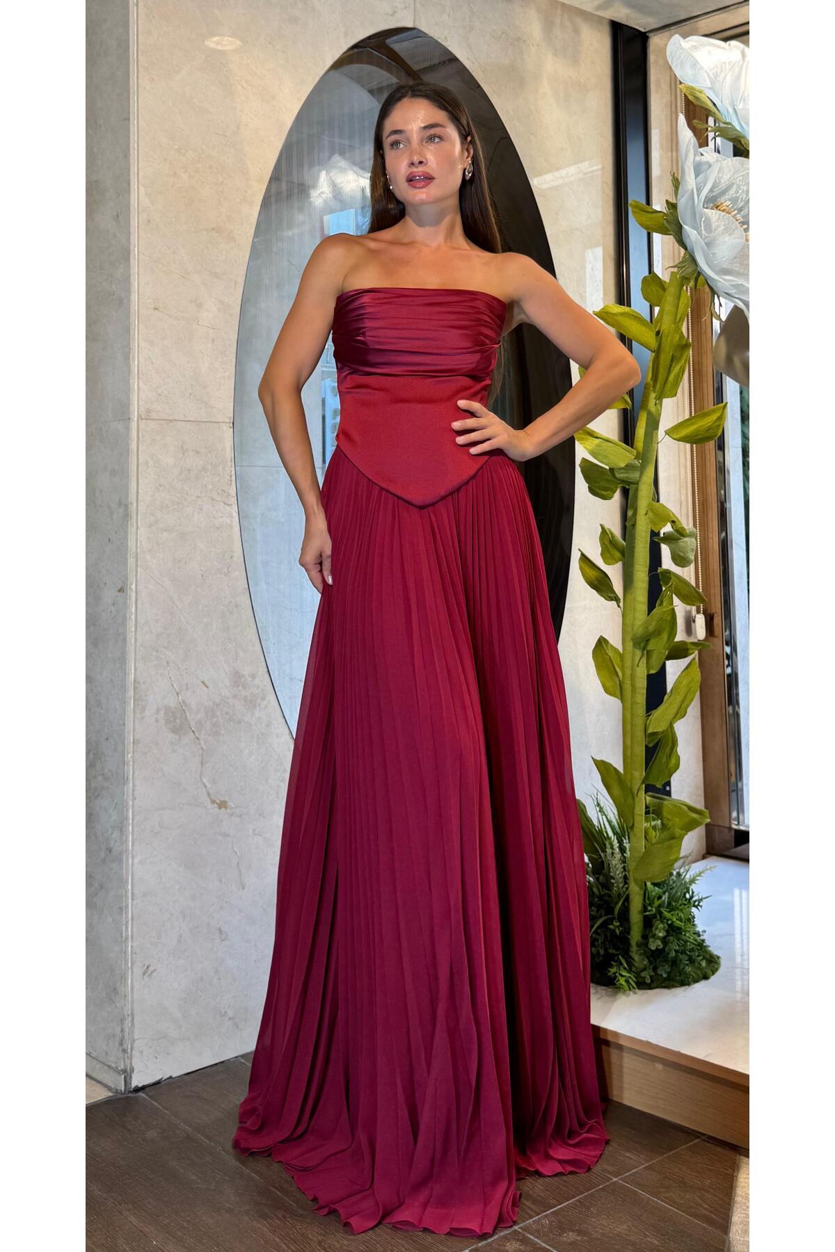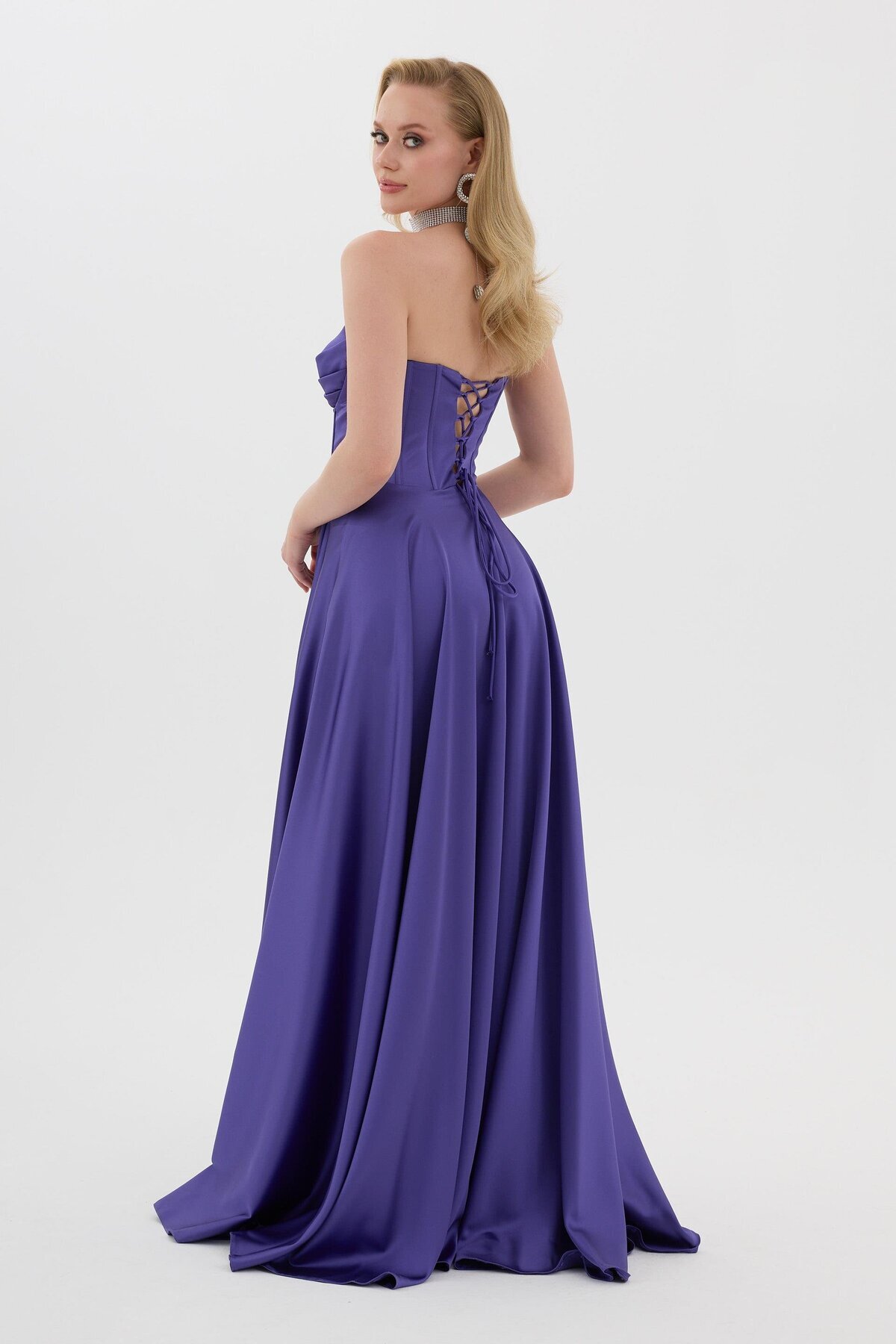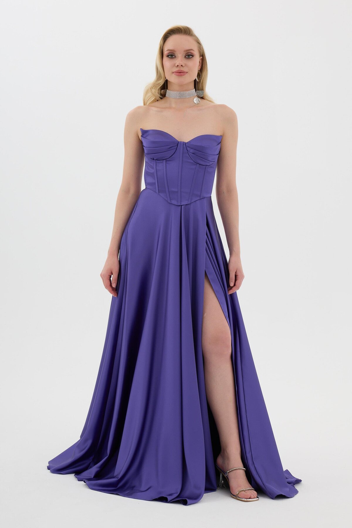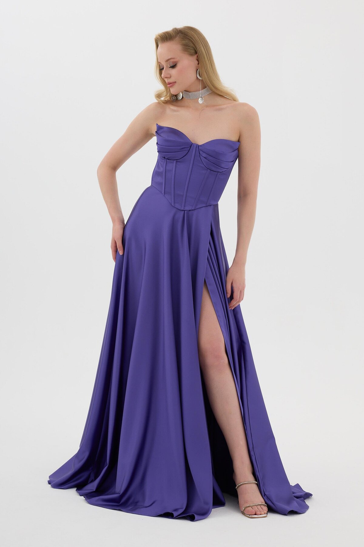 Mor Kedi Kulağı Yırtmaçlı Saten Abiye Elbise Mor Kedi Kulağı Yırtmaçlı Saten Abiye Elbise 58528 42