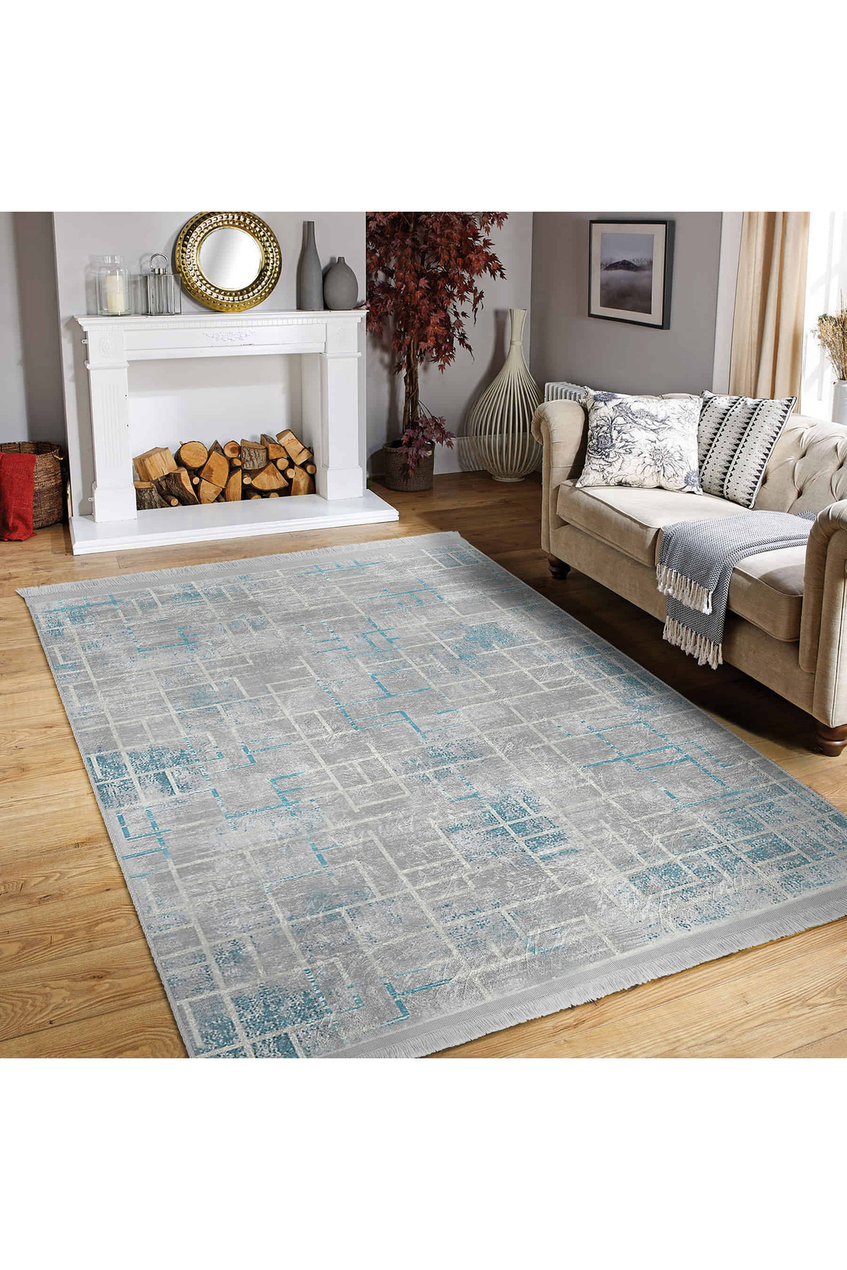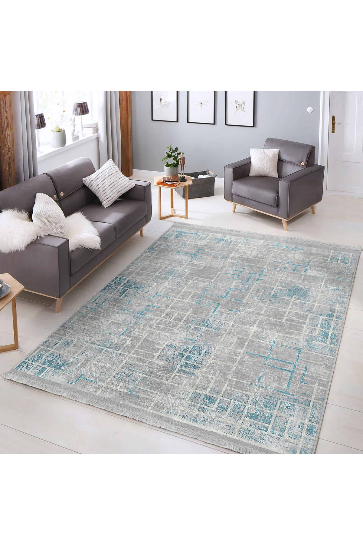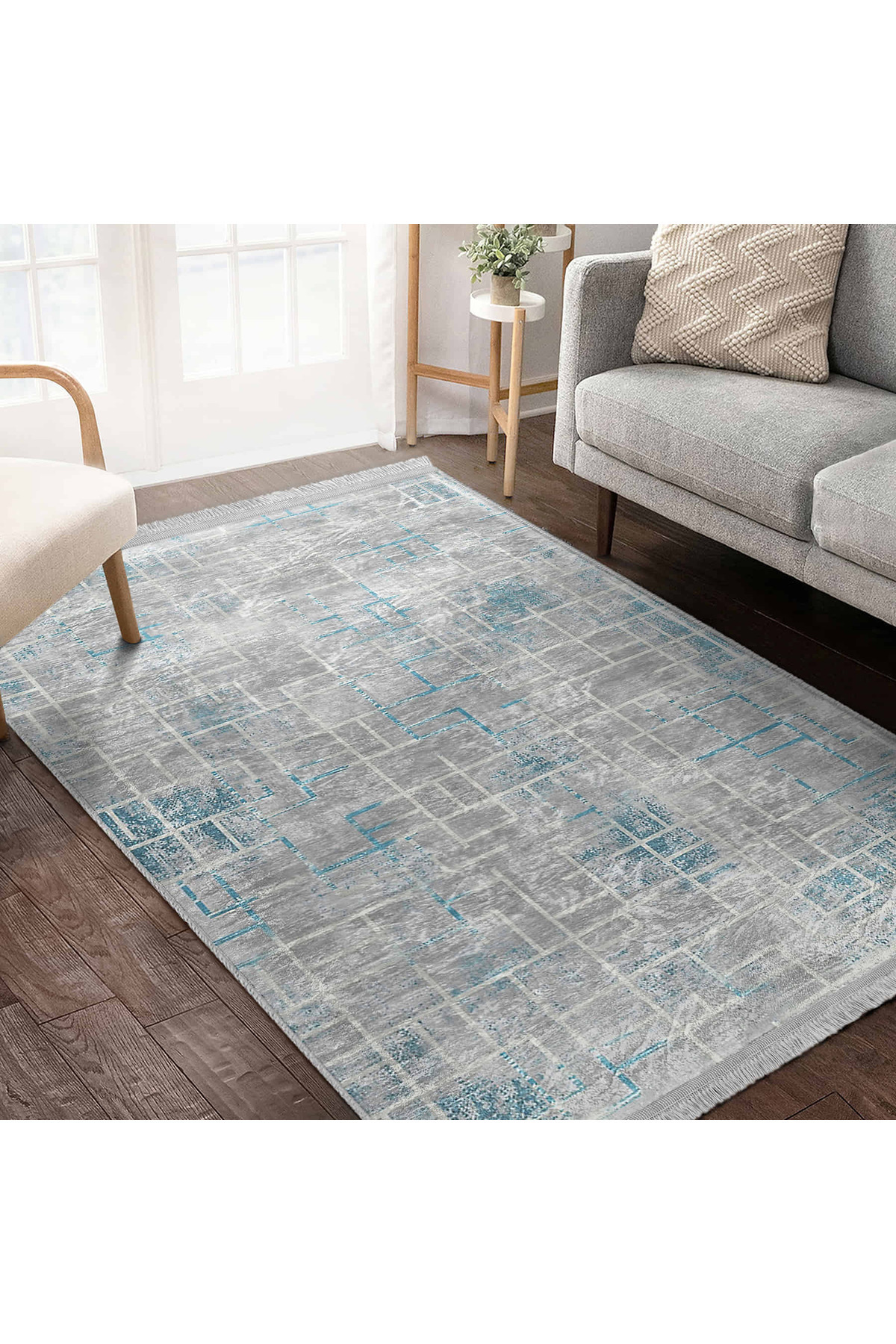 Mavi – Gri Tonlarında Modern Geometrik Desenli Salon Halısı - Makinede Yıkanabilir Kaymaz Taban Halı Mavi – Gri Tonlarında Modern Geometrik Desenli Salon Halısı - Makinede Yıkanabilir Kaymaz Taban Halı DikHali-11464 160 x 230