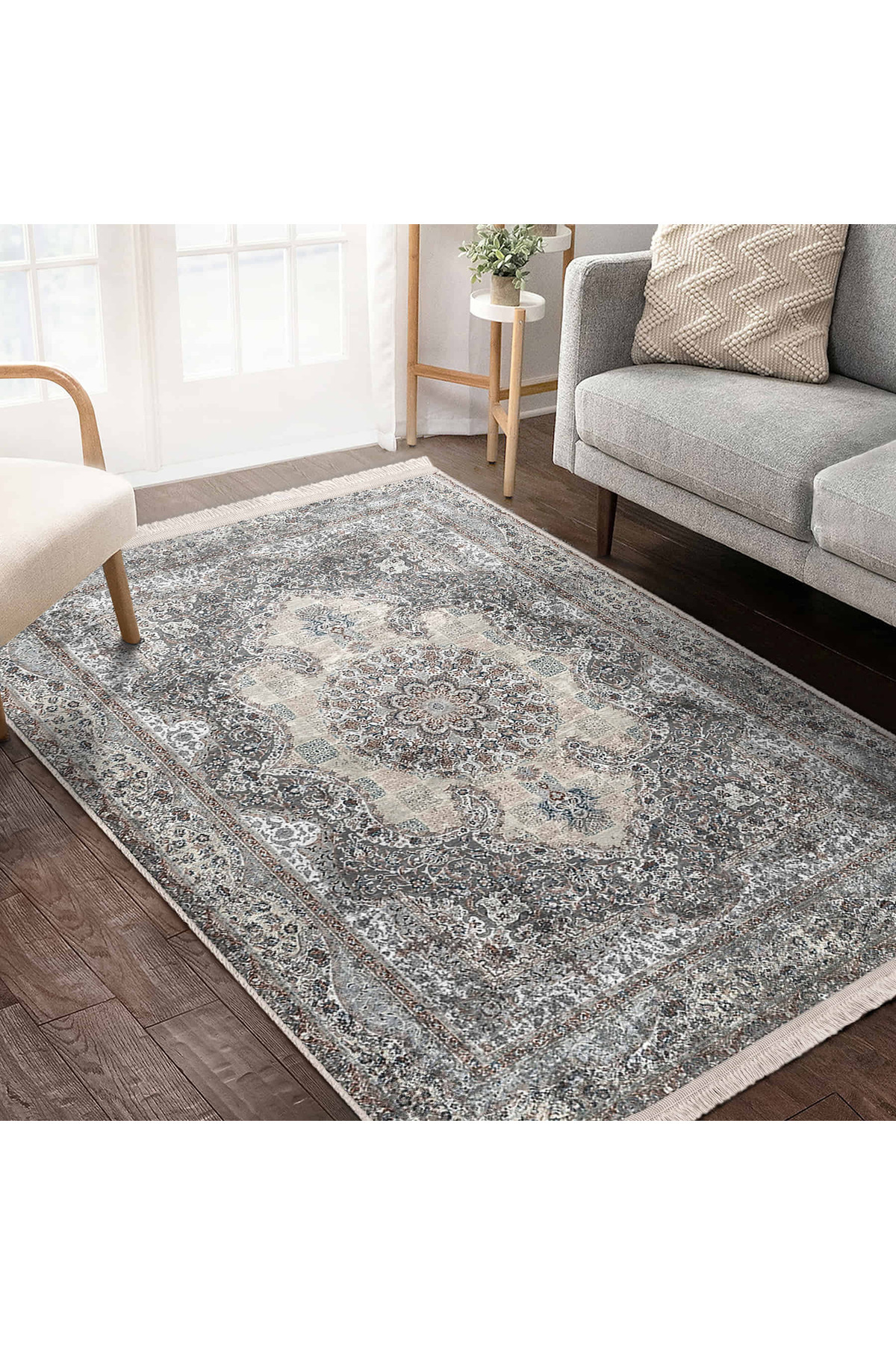 Gri ve Beyaz Tonlarda Geleneksel Desenli Salon Halısı - Kaymaz Tabanlı Makinede Yıkanabilir Halı Gri ve Beyaz Tonlarda Geleneksel Desenli Salon Halısı - Kaymaz Tabanlı Makinede Yıkanabilir Halı DikHali-11518 160 x 230