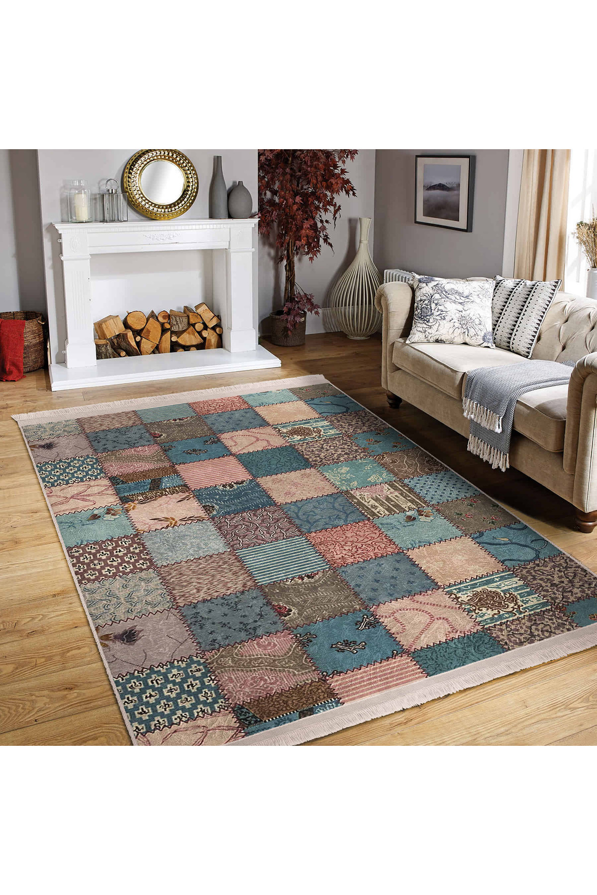 Patchwork Desenli Yıkanabilir Kaymaz Taban Dikdörtgen Salon Halısı - Renkli ve Şık Tasarım Patchwork Desenli Yıkanabilir Kaymaz Taban Dikdörtgen Salon Halısı - Renkli ve Şık Tasarım DikHali-11649 160 x 230