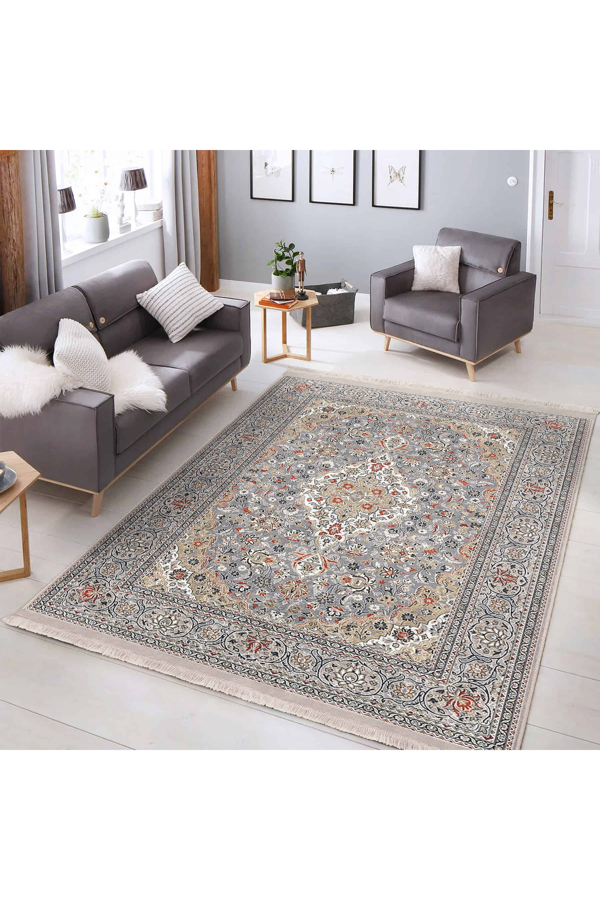 Gri – Krem Zeminde Elegan Çiçek Motifli Salon için Yıkanabilir Kaymaz Taban Halı Gri – Krem Zeminde Elegan Çiçek Motifli Salon için Yıkanabilir Kaymaz Taban Halı DikHali-11469 160 x 230
