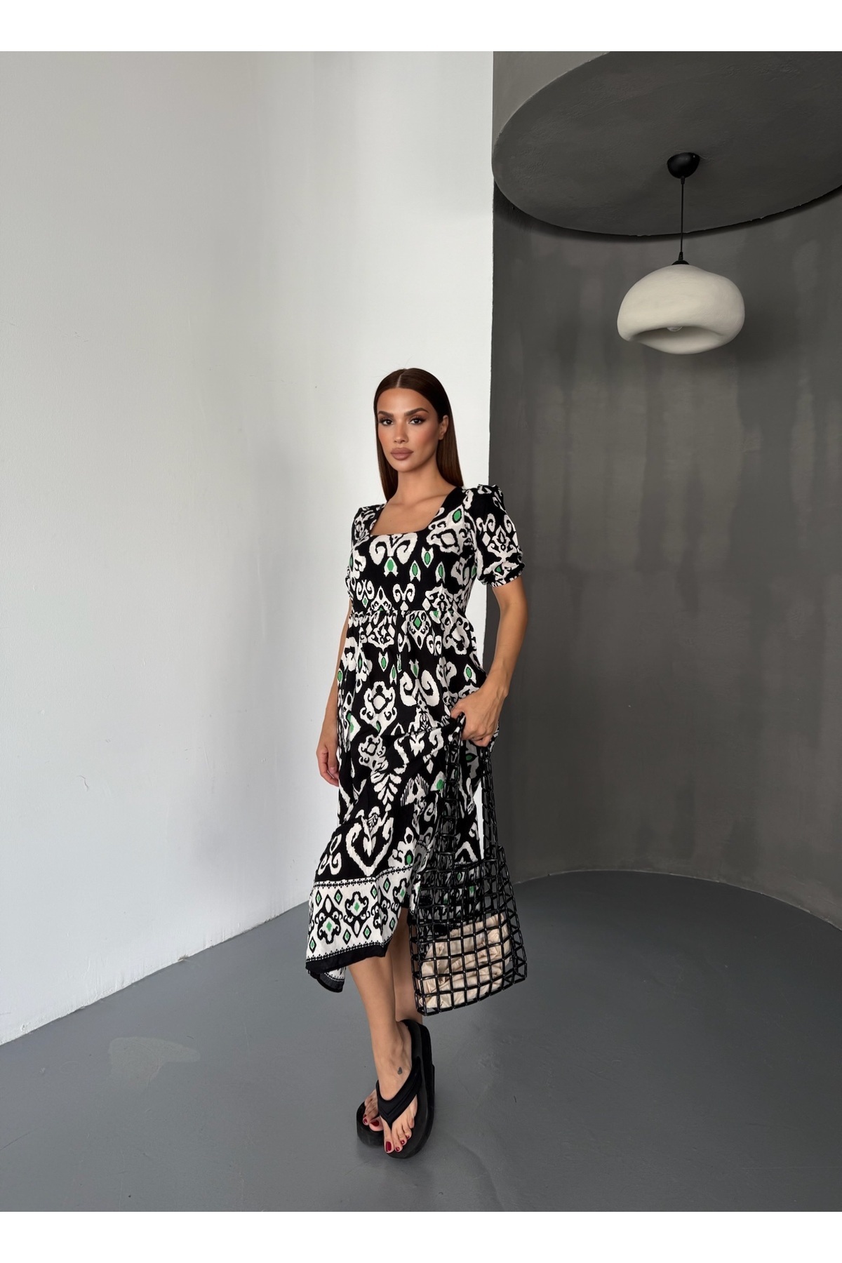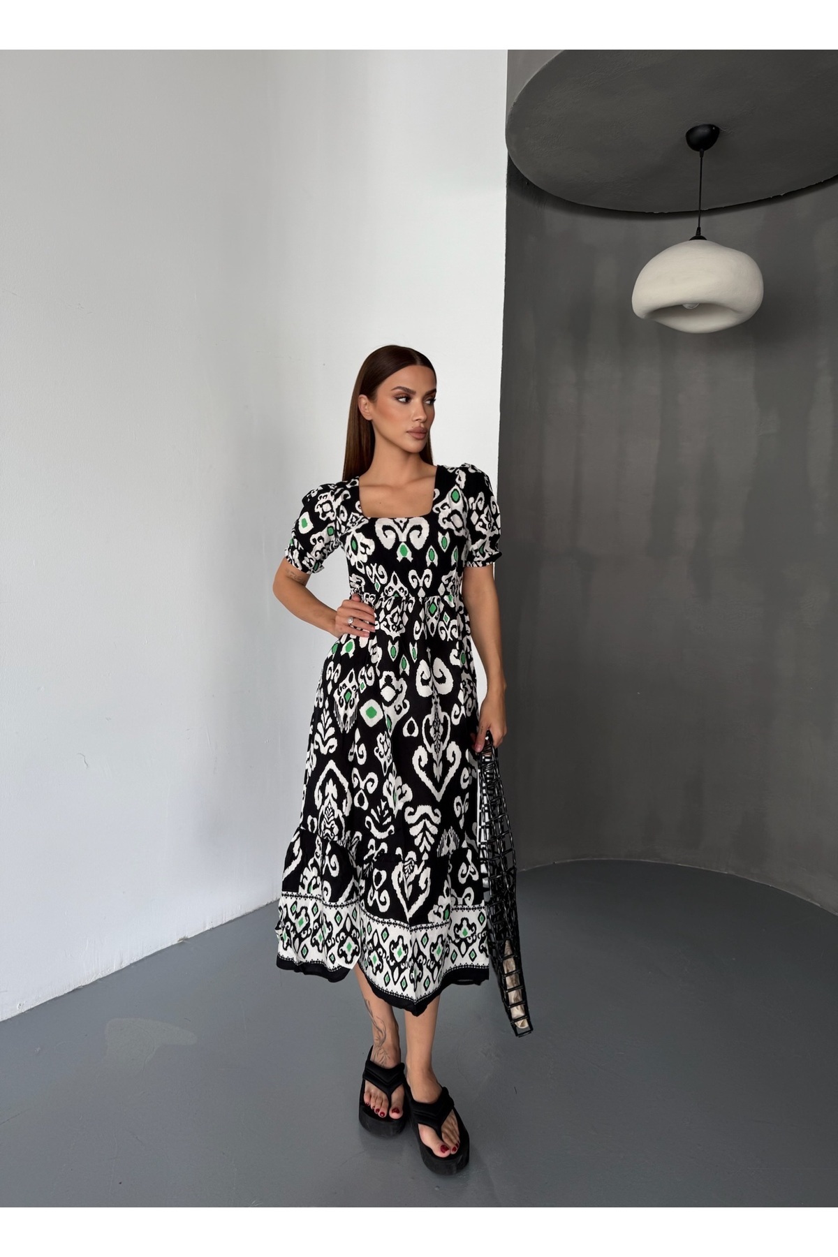 Kadın Kare Yaka Kısa Kol Uzun Yazlık Viskon Elbise Kadın Kare Yaka Kısa Kol Uzun Yazlık Viskon Elbise TYC561BAB132DADADF990D100 L
