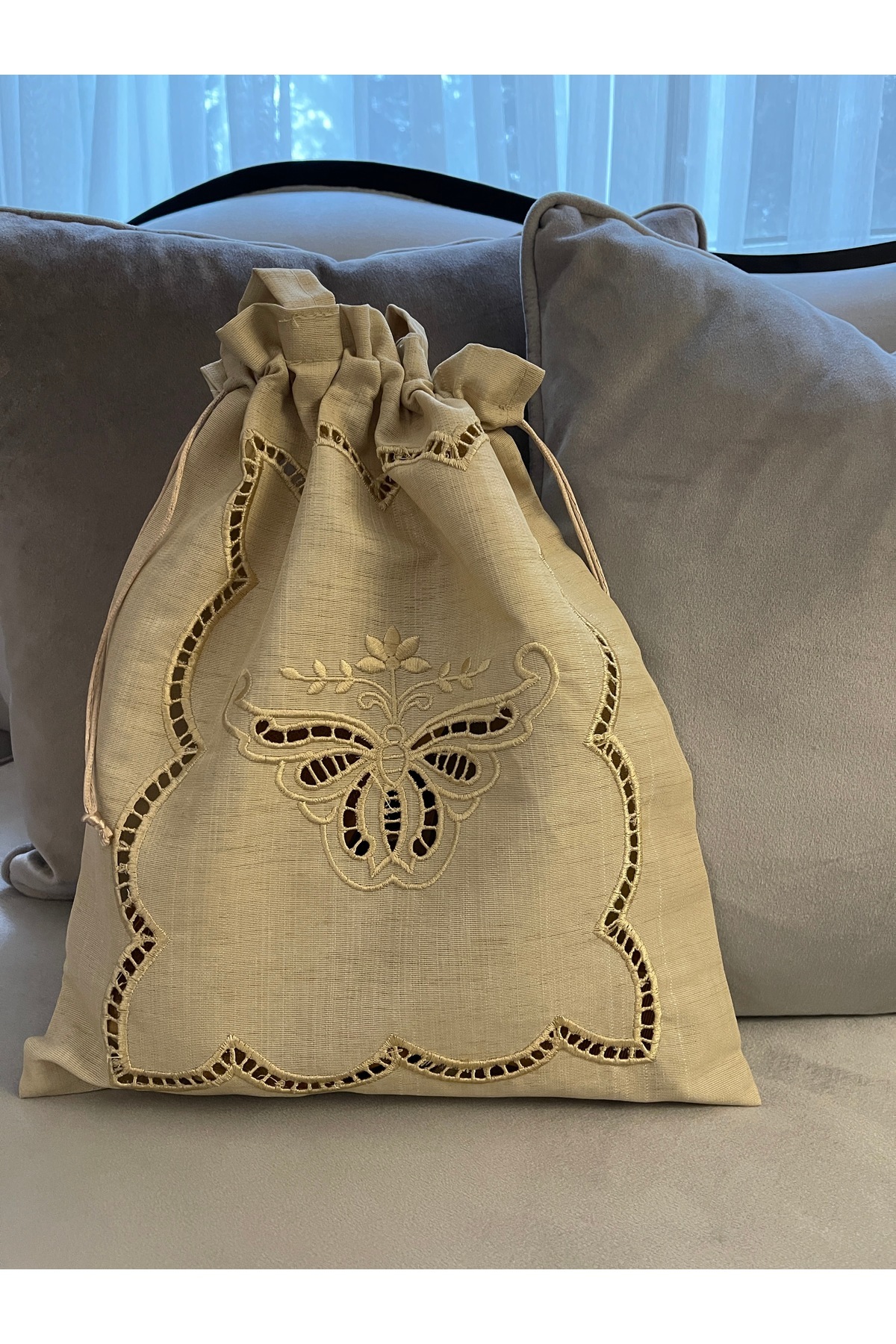 Kelebek Nakış Cappucino Ayakkabı Çantası Kelebek Nakış Cappucino Ayakkabı Çantası kelebekçanta تک سایز