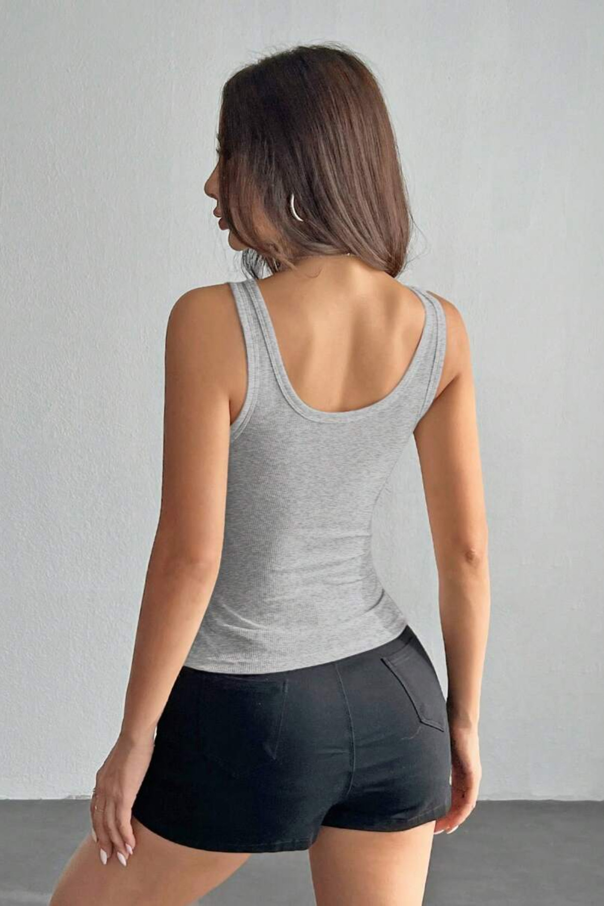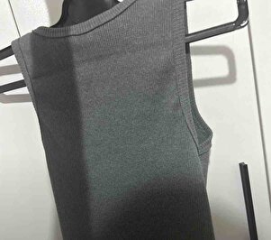 Kadın Gri Kaşkorse Kumaş Geniş Askılı Basıc Top Bluz Kadın Gri Kaşkorse Kumaş Geniş Askılı Basıc Top Bluz LNZ134 XL