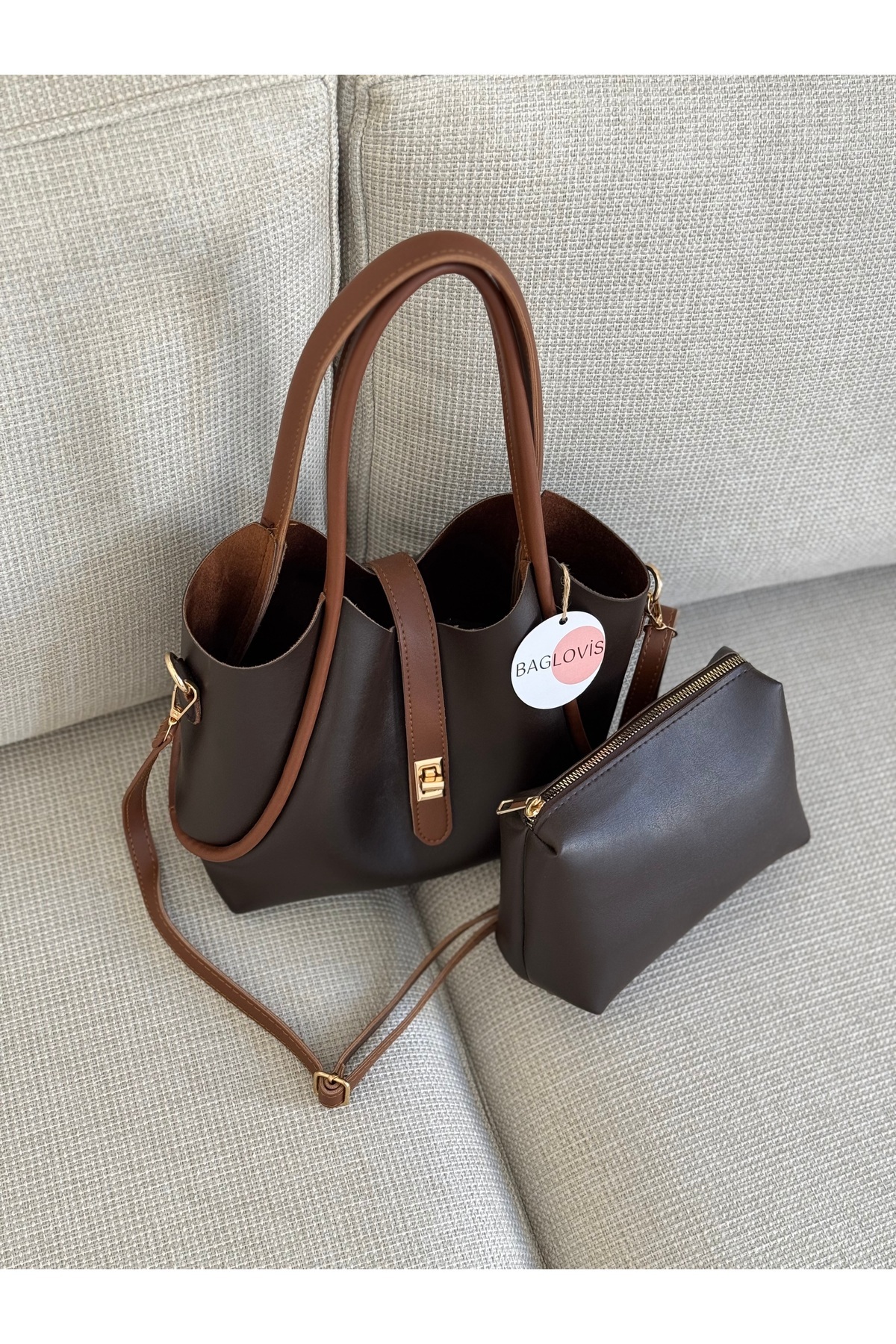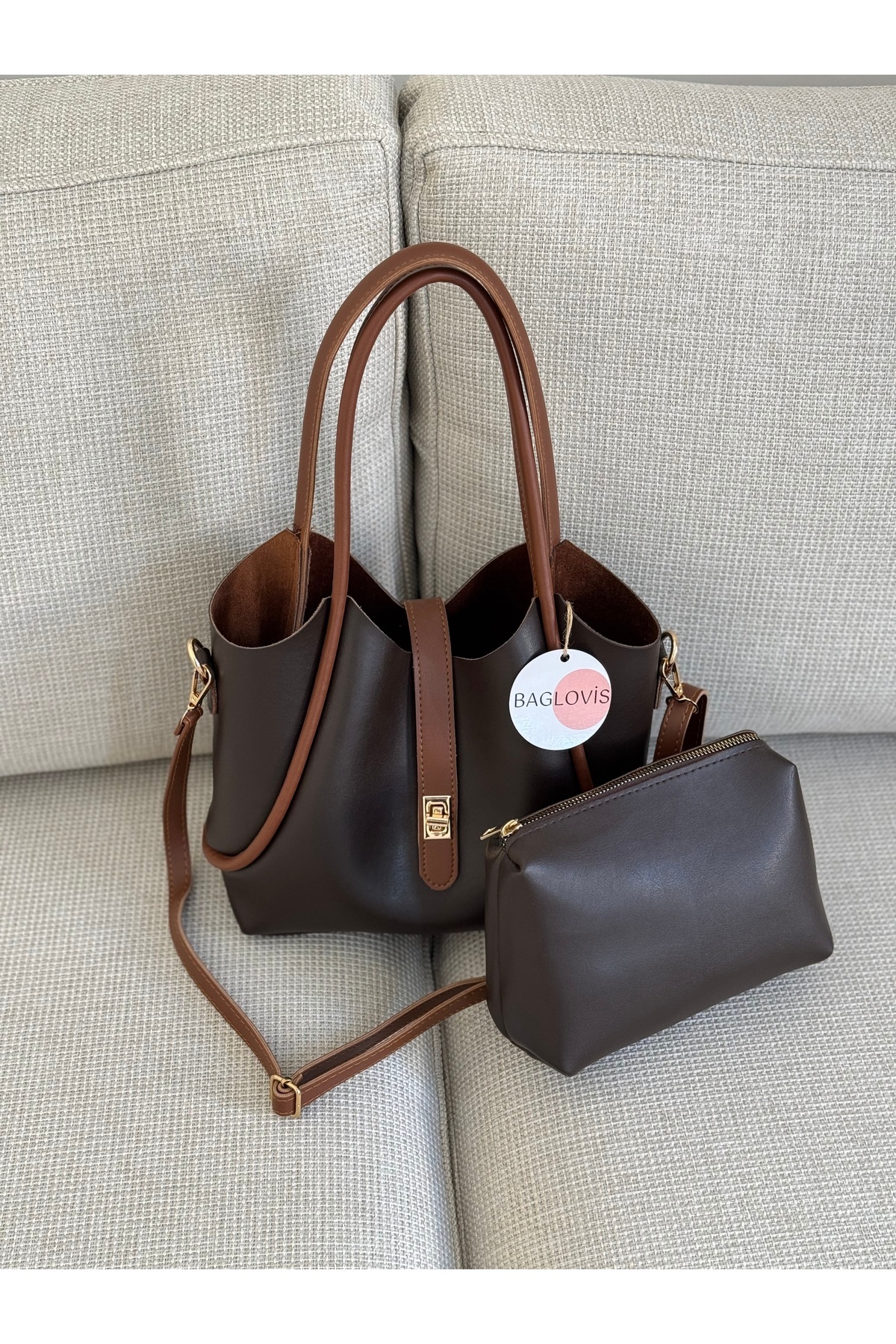 YAVRU ÇANTA EKSTRALI ÖNÜ KİLİT DETAYLI KAHVE/TABA KADIN OMUZ ÇANTASI EN32 BOY24 YAVRU ÇANTA EKSTRALI ÖNÜ KİLİT DETAYLI KAHVE/TABA KADIN OMUZ ÇANTASI EN32 BOY24 KİTFİT تک سایز