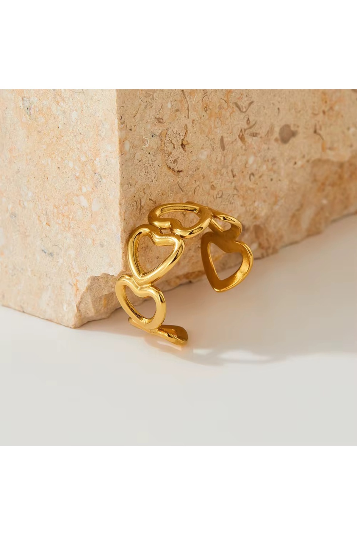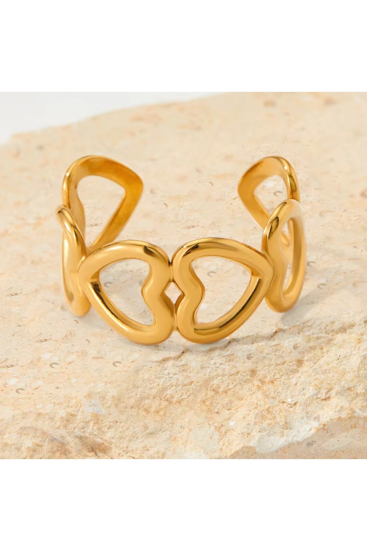 Kararmaz Çelik Sıralı Kalp Model Gold Renk Ayarlanabilir Kadın Yüzük Kararmaz Çelik Sıralı Kalp Model Gold Renk Ayarlanabilir Kadın Yüzük SYYZK1508 تک سایز