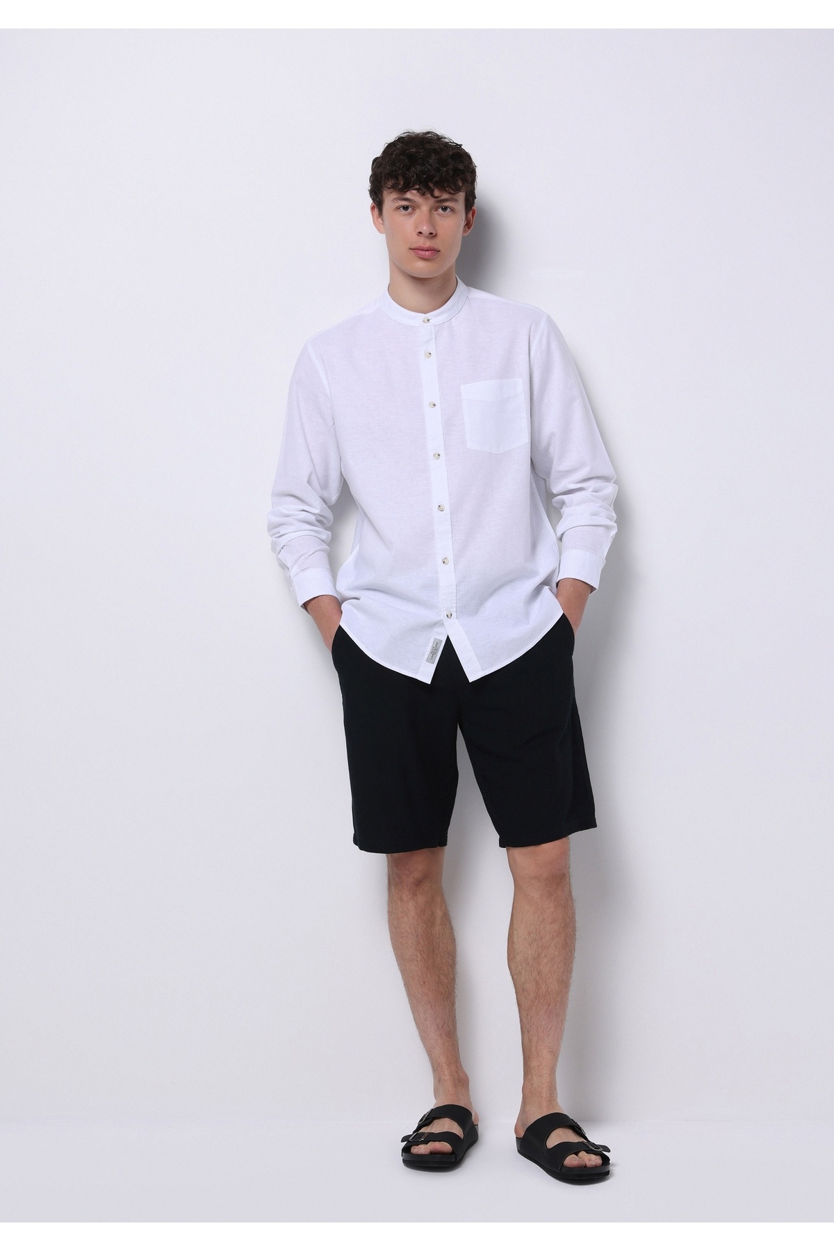 Regular Fit Hakim Yaka Düz Erkek Keten Karışımlı Beyaz Uzun Kol Gömlek Regular Fit Hakim Yaka Düz Erkek Keten Karışımlı Beyaz Uzun Kol Gömlek CL1070508_Q1.V2 2XL