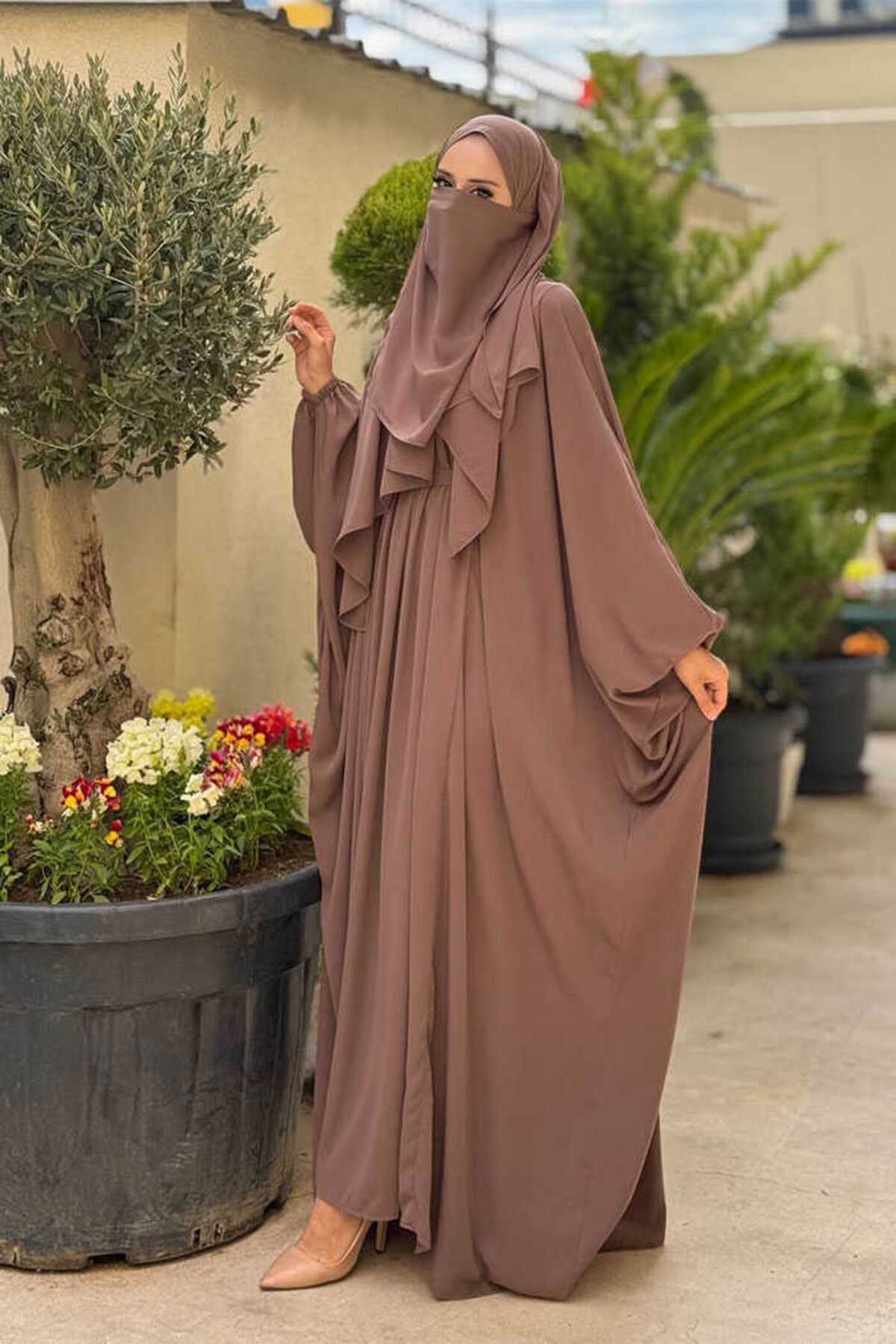 Yarasakol Belden Kuşaklı Peçeli, Şallı Elbise 6038 Vizon Yarasakol Belden Kuşaklı Peçeli, Şallı Elbise 6038 Vizon Standart