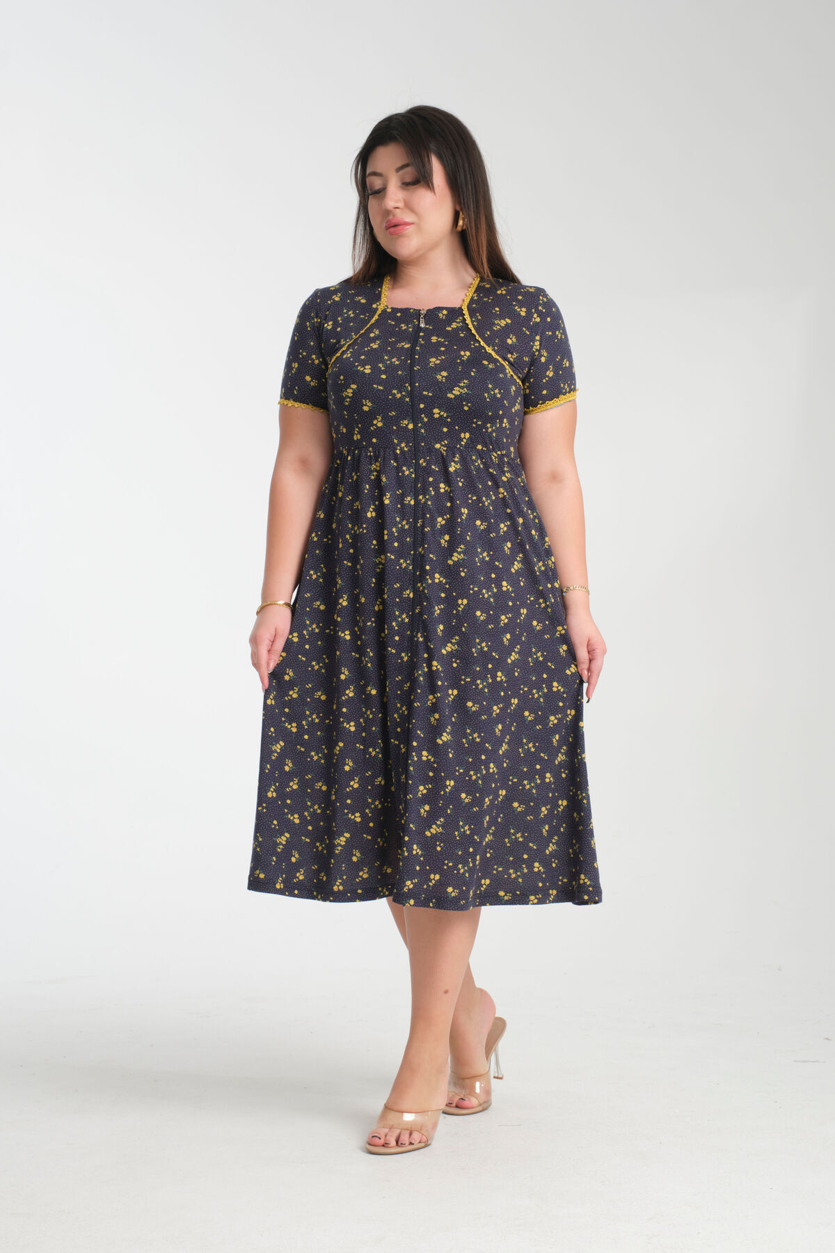 Büyük Beden Çiçek Desenli Boydan Fermuarlı Kısa Kollu Elbise Büyük Beden Çiçek Desenli Boydan Fermuarlı Kısa Kollu Elbise 84726 4XL