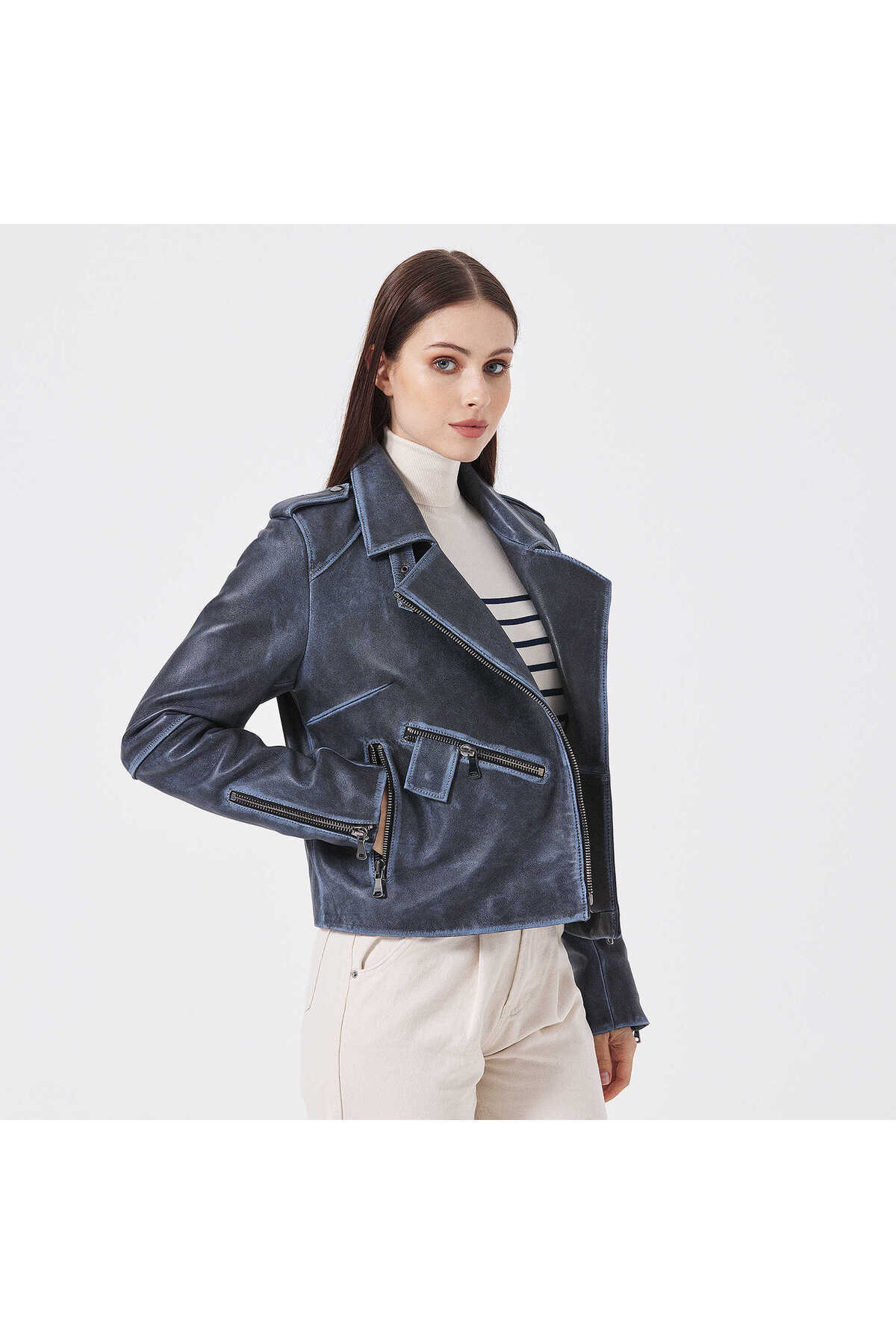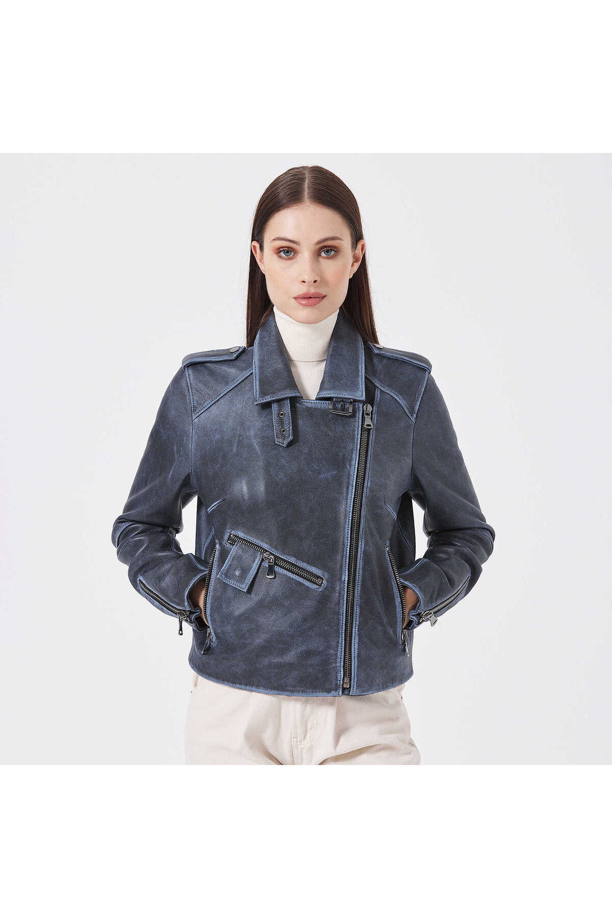 Mavi Hakiki Deri Kadın Hakiki Deri Biker Mont - K23KDM320402-U1J Mavi Hakiki Deri Kadın Hakiki Deri Biker Mont - K23KDM320402-U1J 4XL