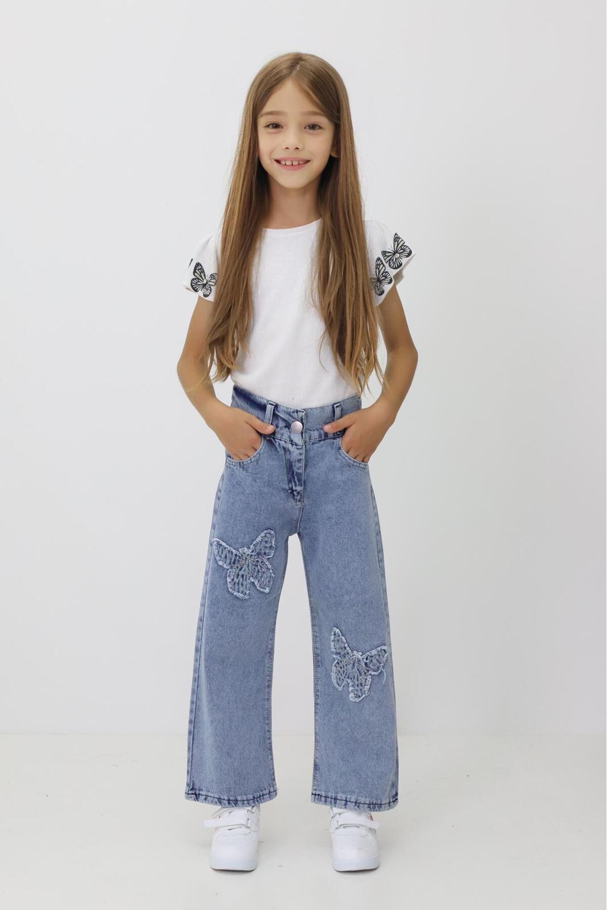 Kız Çocuk Kot Pantolon Düz Model Boru Paça Jeans Kız Çocuk Kot Pantolon Düz Model Boru Paça Jeans Prof-020 13 Yaş