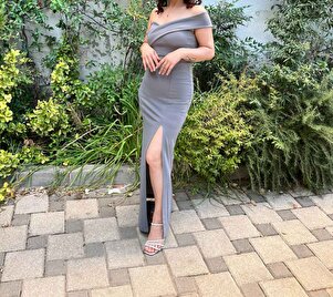 Gri Kadın Tek Omuz Yırtmaç Detay Krep Kumaş Maxi Boy Elbise Gri Kadın Tek Omuz Yırtmaç Detay Krep Kumaş Maxi Boy Elbise DFX582707 XL