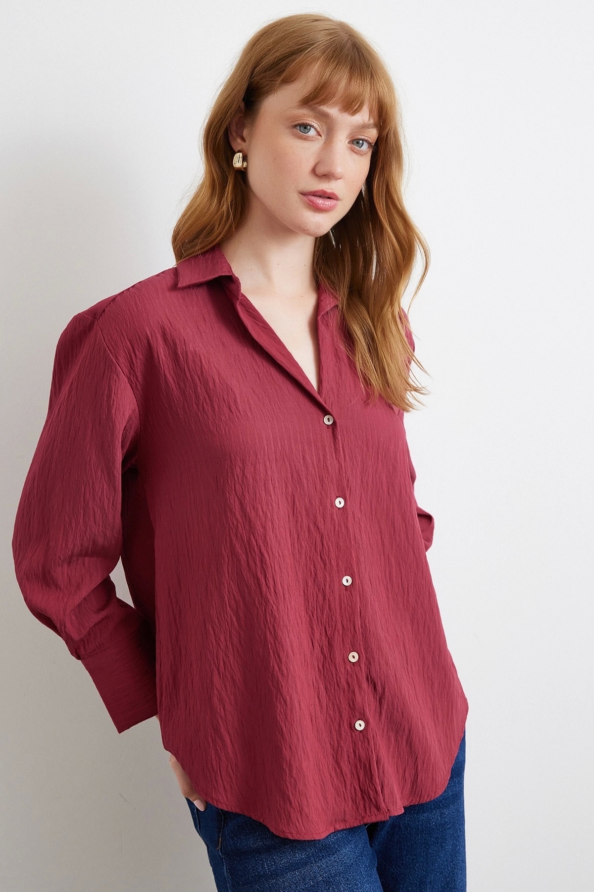 Paralel Çizgili Gömlek Bordo Paralel Çizgili Gömlek Bordo NM25S104001 L