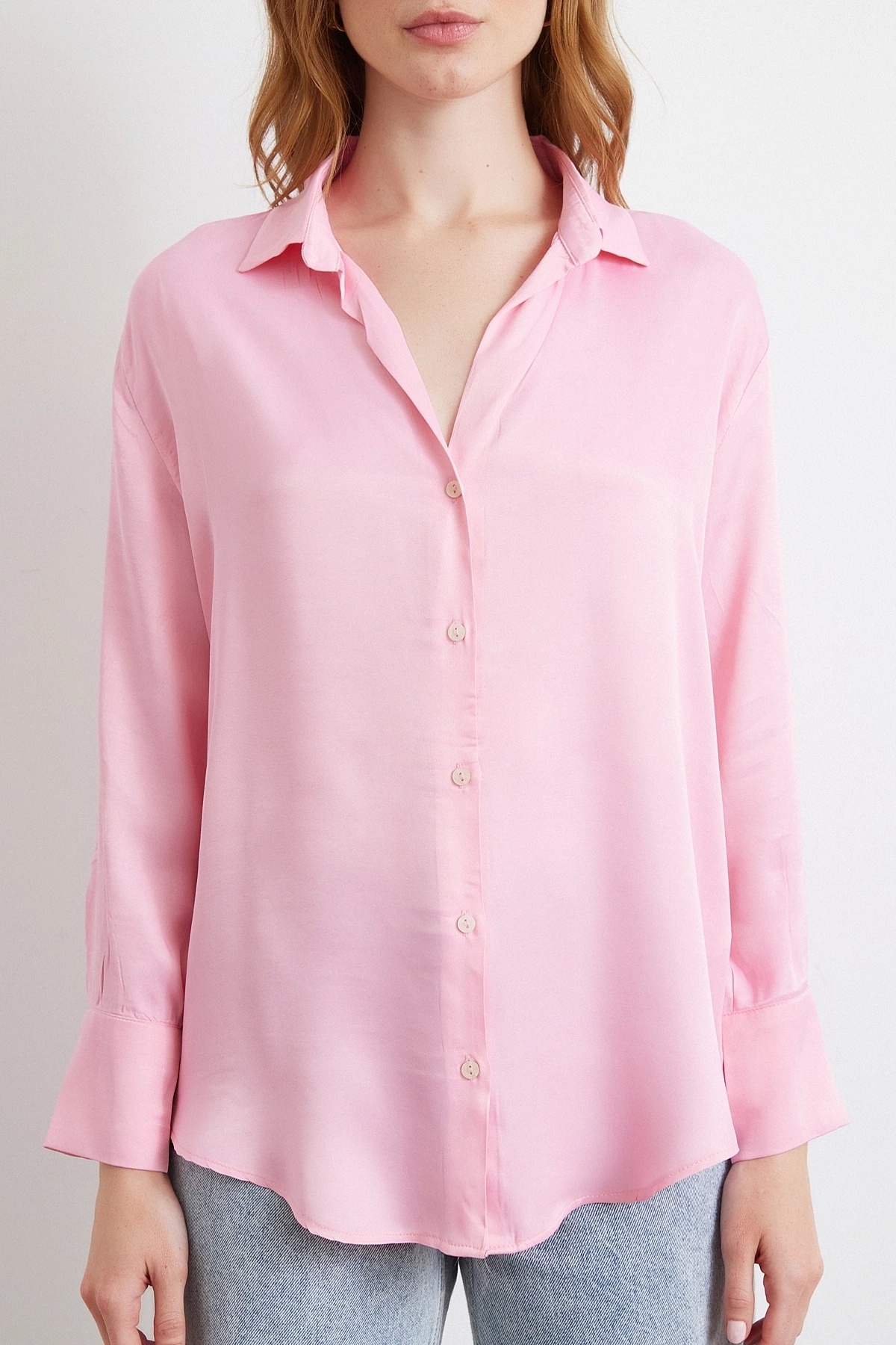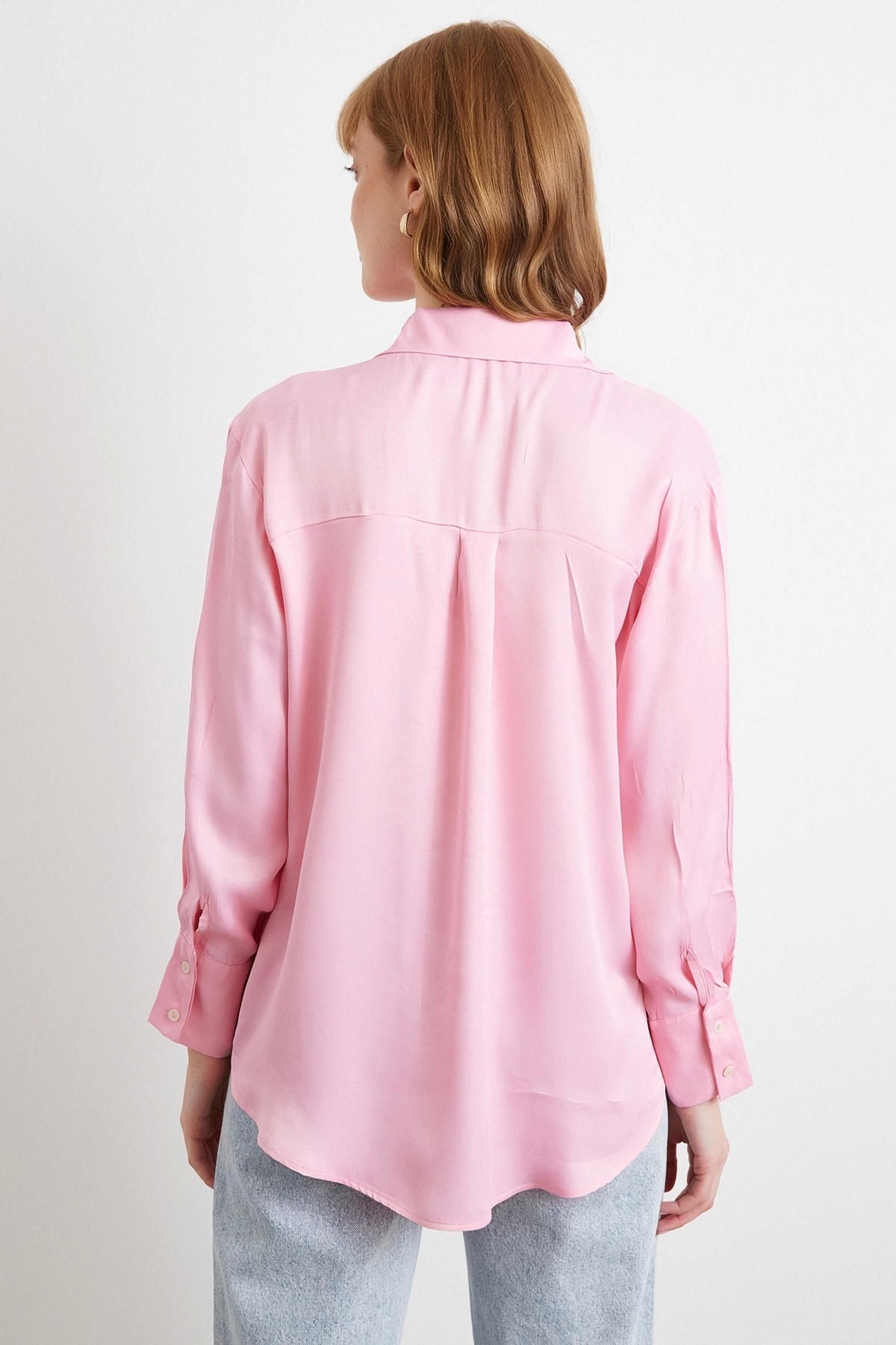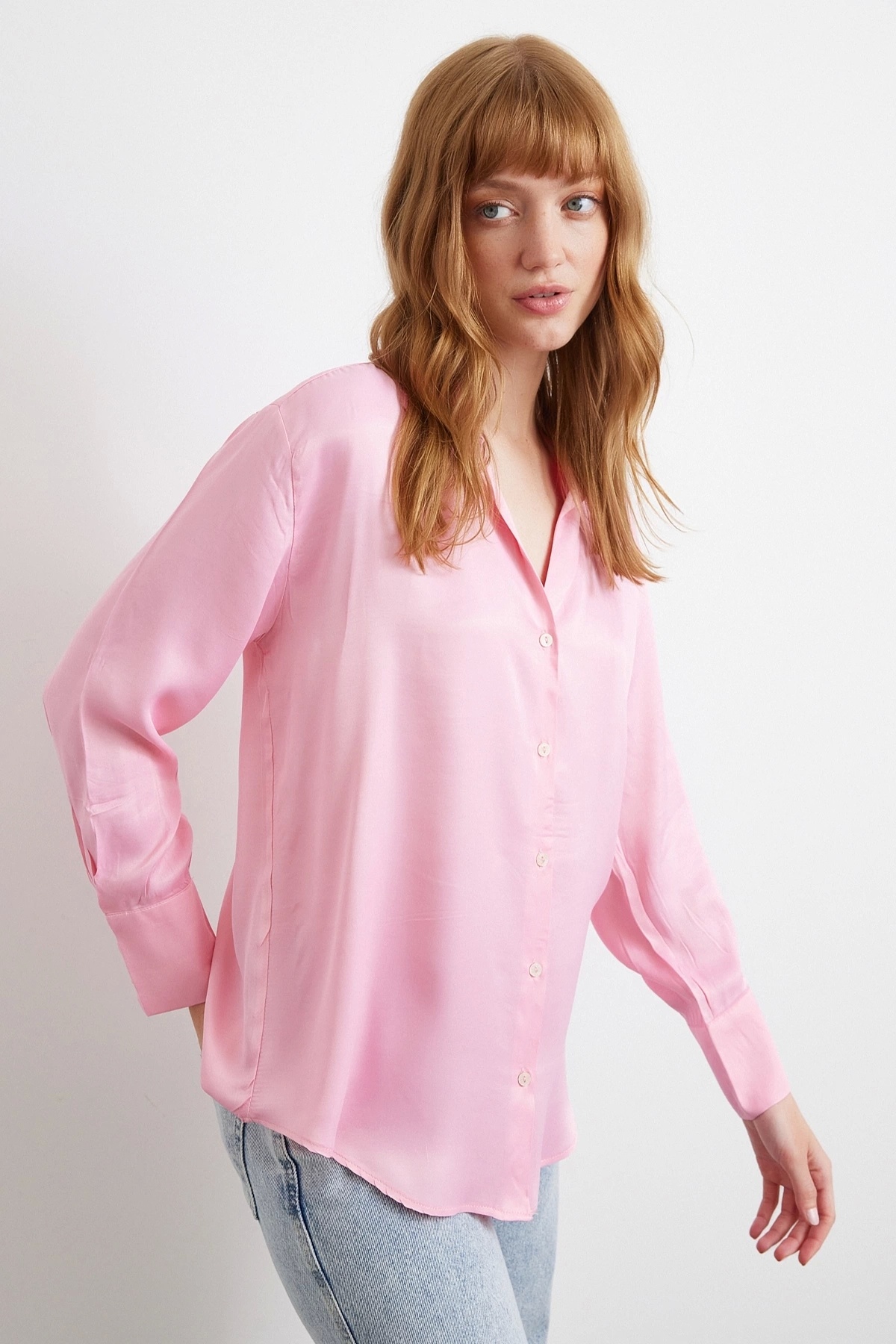 Viskon Saten Gömlek Pembe Viskon Saten Gömlek Pembe NM25S105001 L