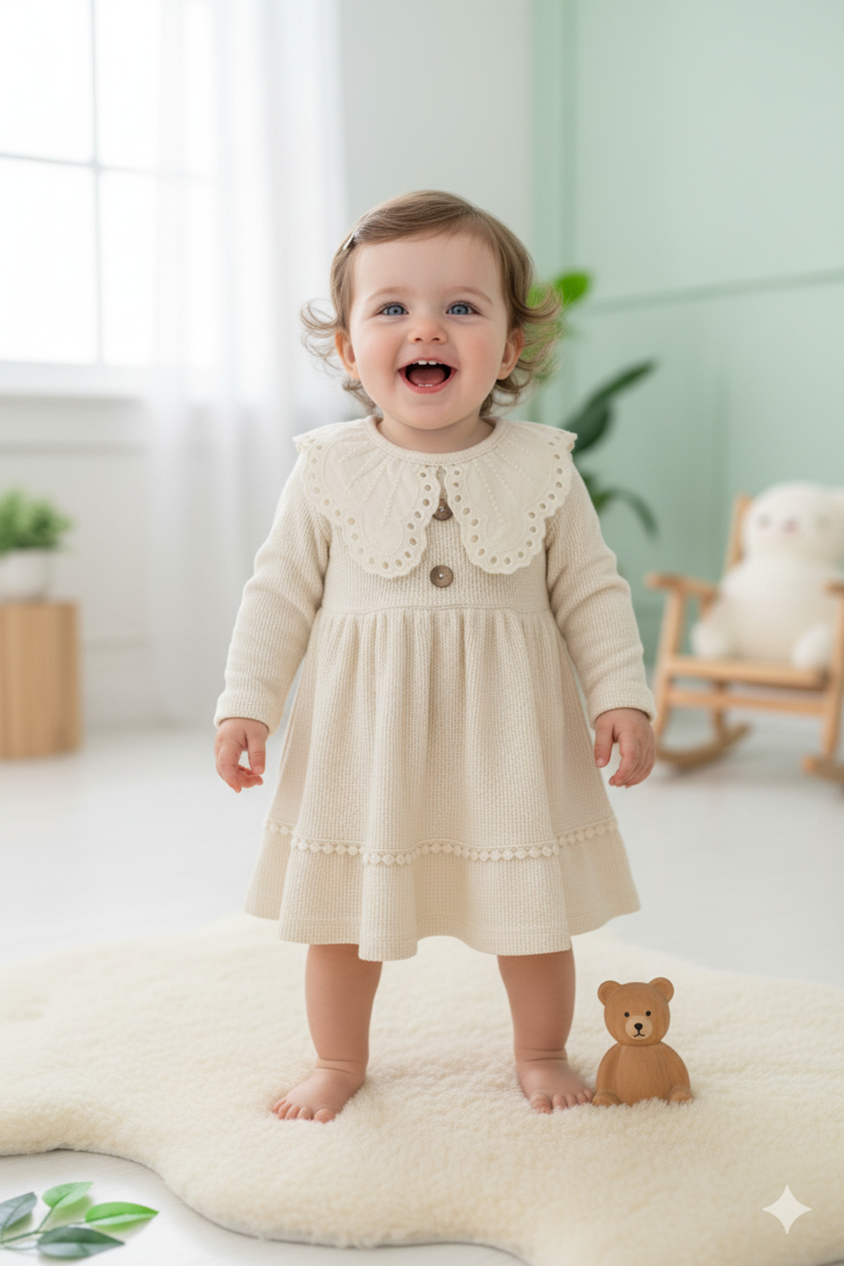Papatya Nakışlı Krinkıl Elbise Papatya Nakışlı Krinkıl Elbise W1222 24 Ay