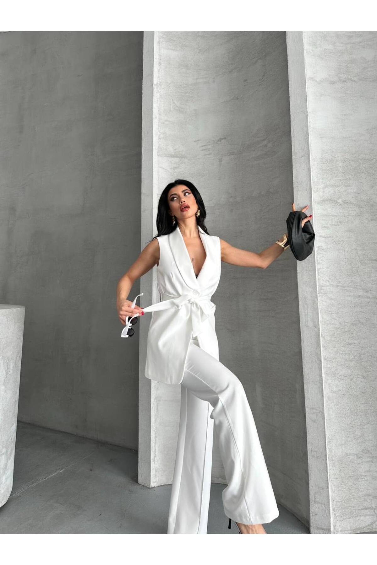 Kadın Şal Yaka Kuşaklı Yelekli Palazzo Pantolonlu Takım Elbise Kadın Şal Yaka Kuşaklı Yelekli Palazzo Pantolonlu Takım Elbise Bella-3123 42