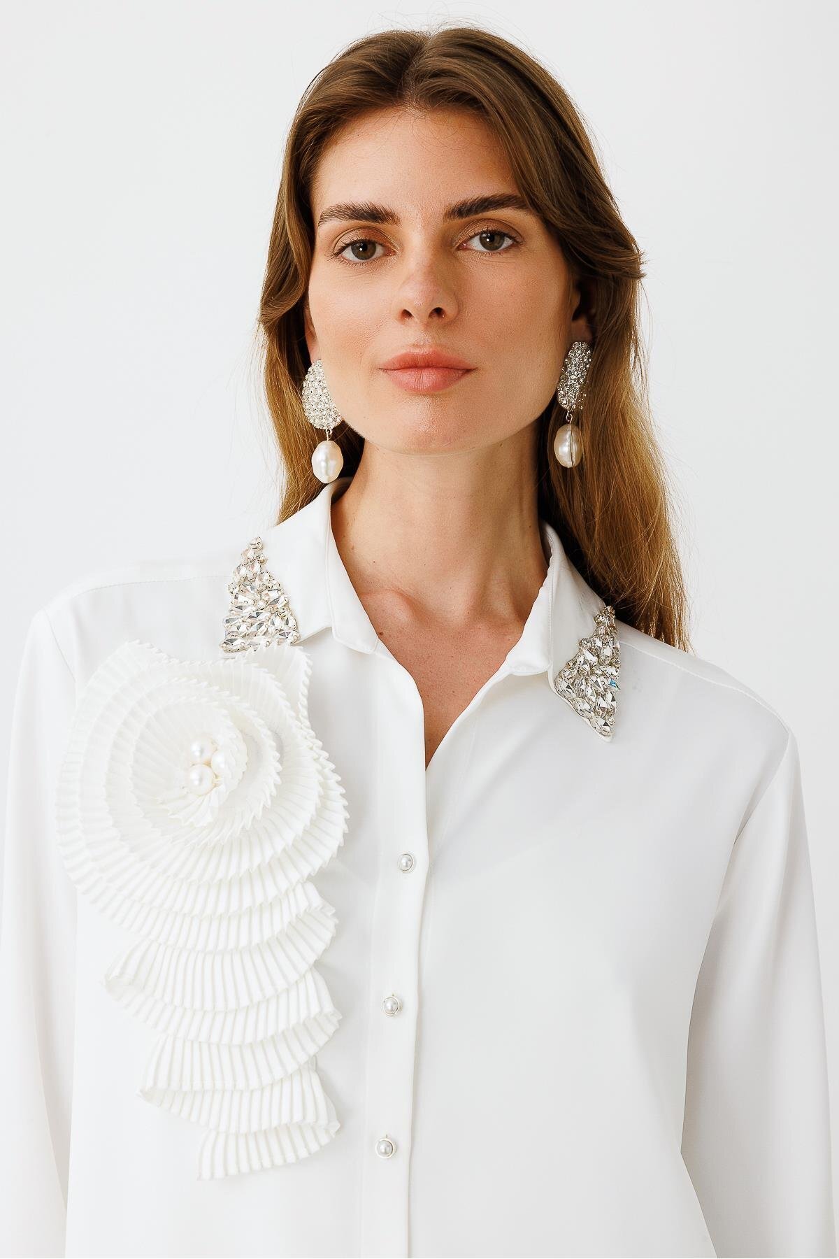Modailgi Yakası Taş Detaylı Pliseli Rahat Kesim Gömlek Ekru Modailgi Yakası Taş Detaylı Pliseli Rahat Kesim Gömlek Ekru ILG251GMK10091 4