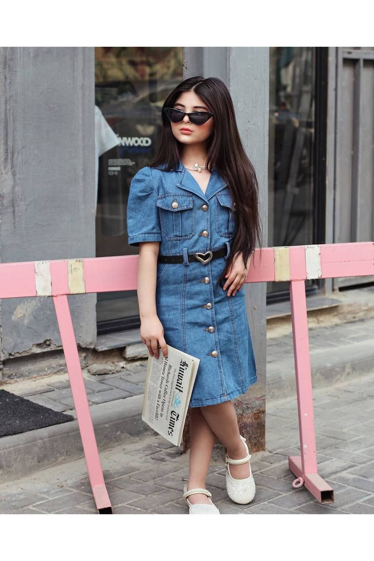 kız Çocuk Kalpli Kemerli Düğmeli Kot Elbise kız Çocuk Kalpli Kemerli Düğmeli Kot Elbise 5114 13 Yaş