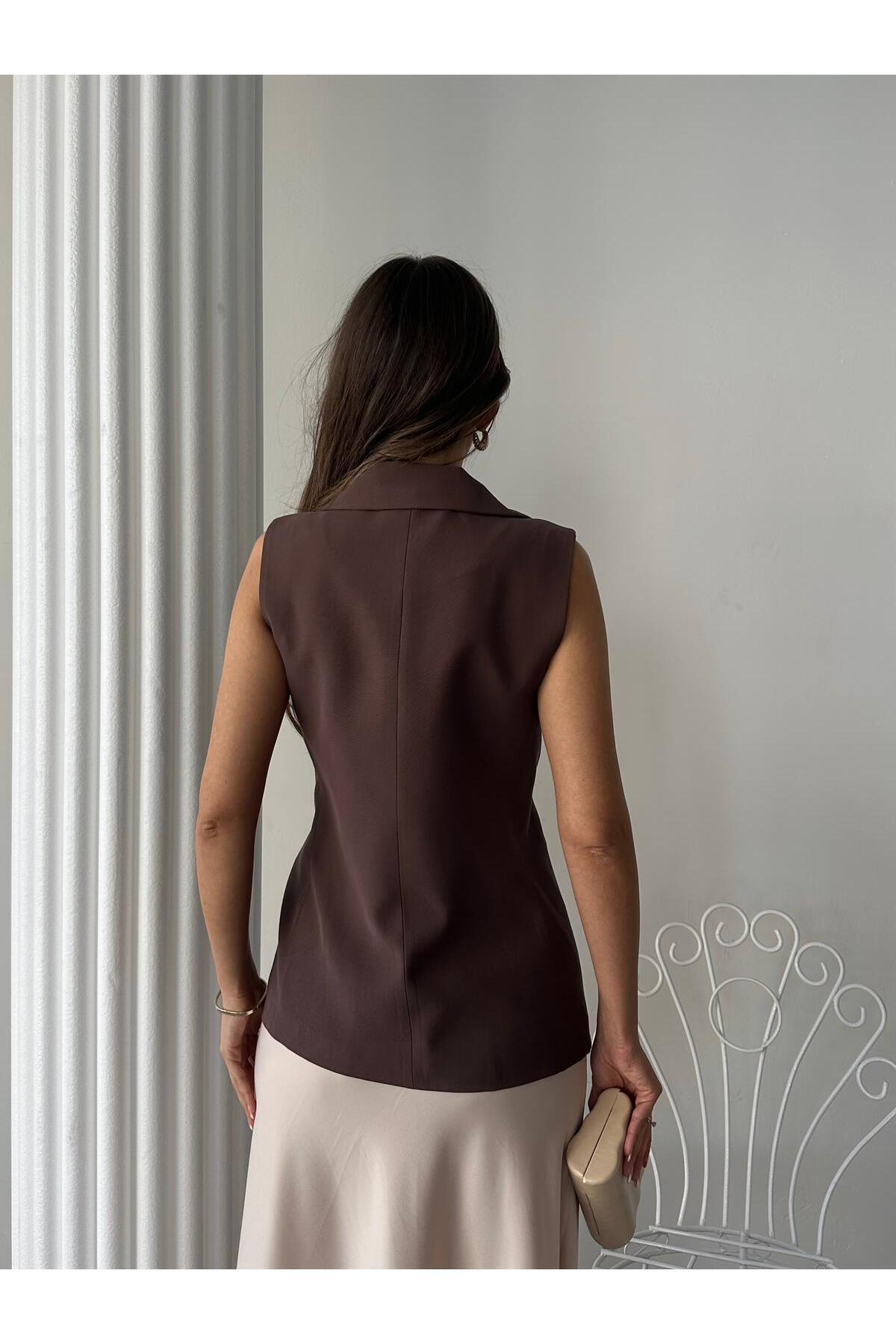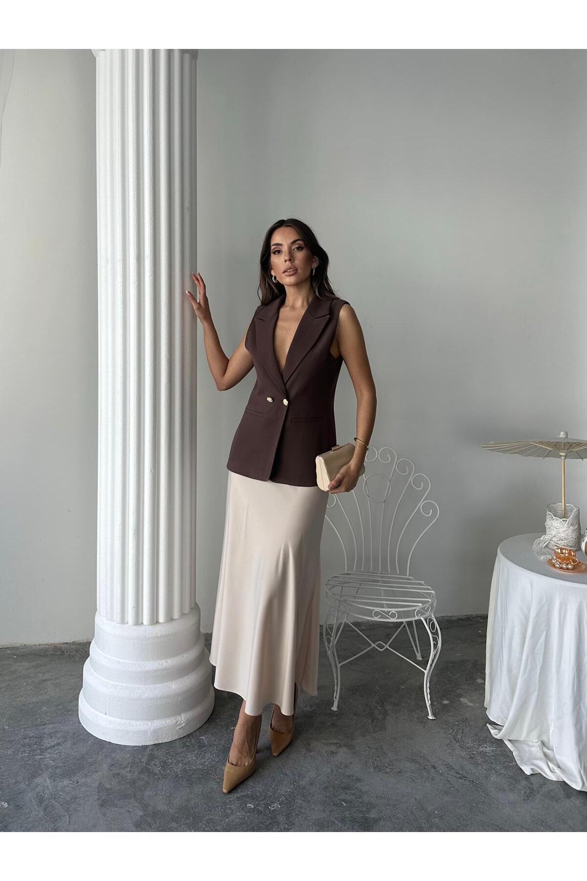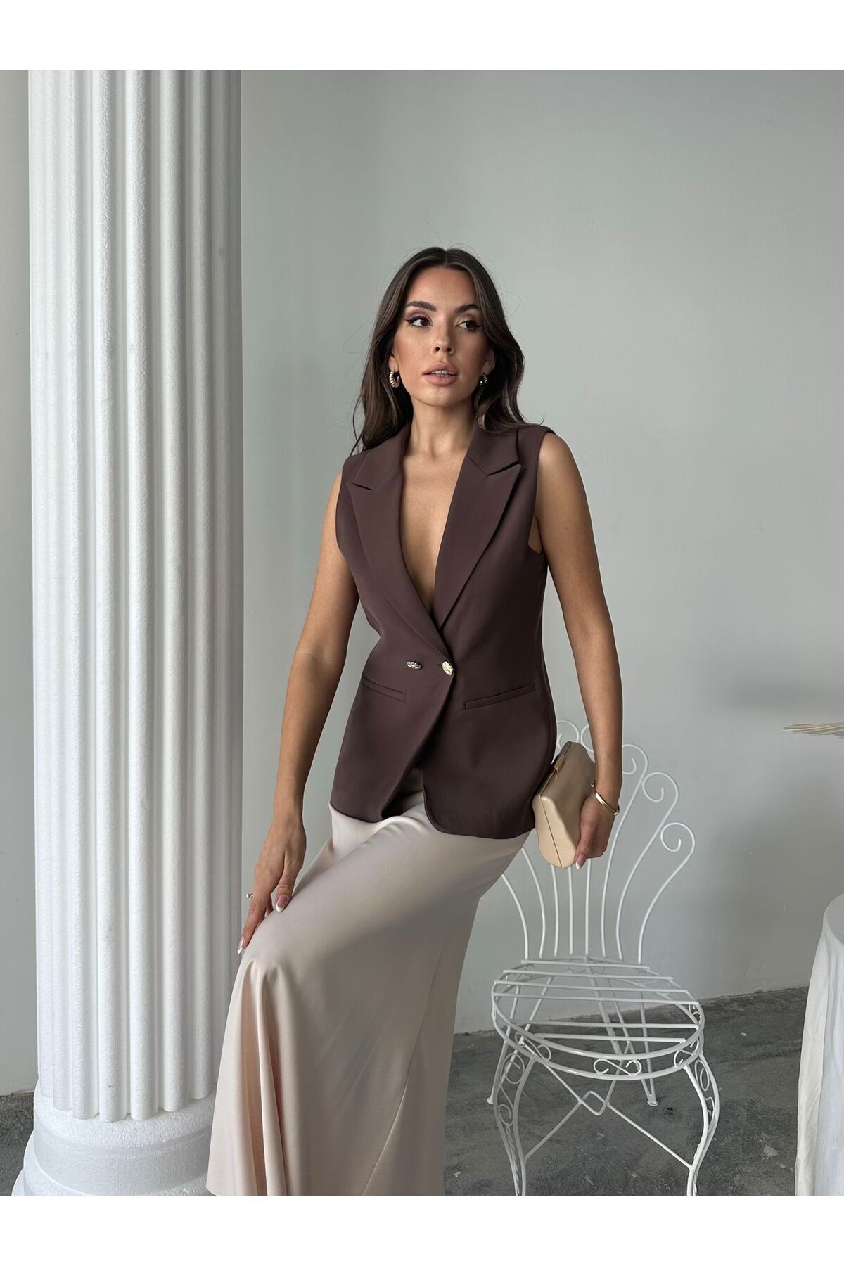 Kadın Kahverengi Modal Kumaş Yelek Kadın Kahverengi Modal Kumaş Yelek elj1133 XL