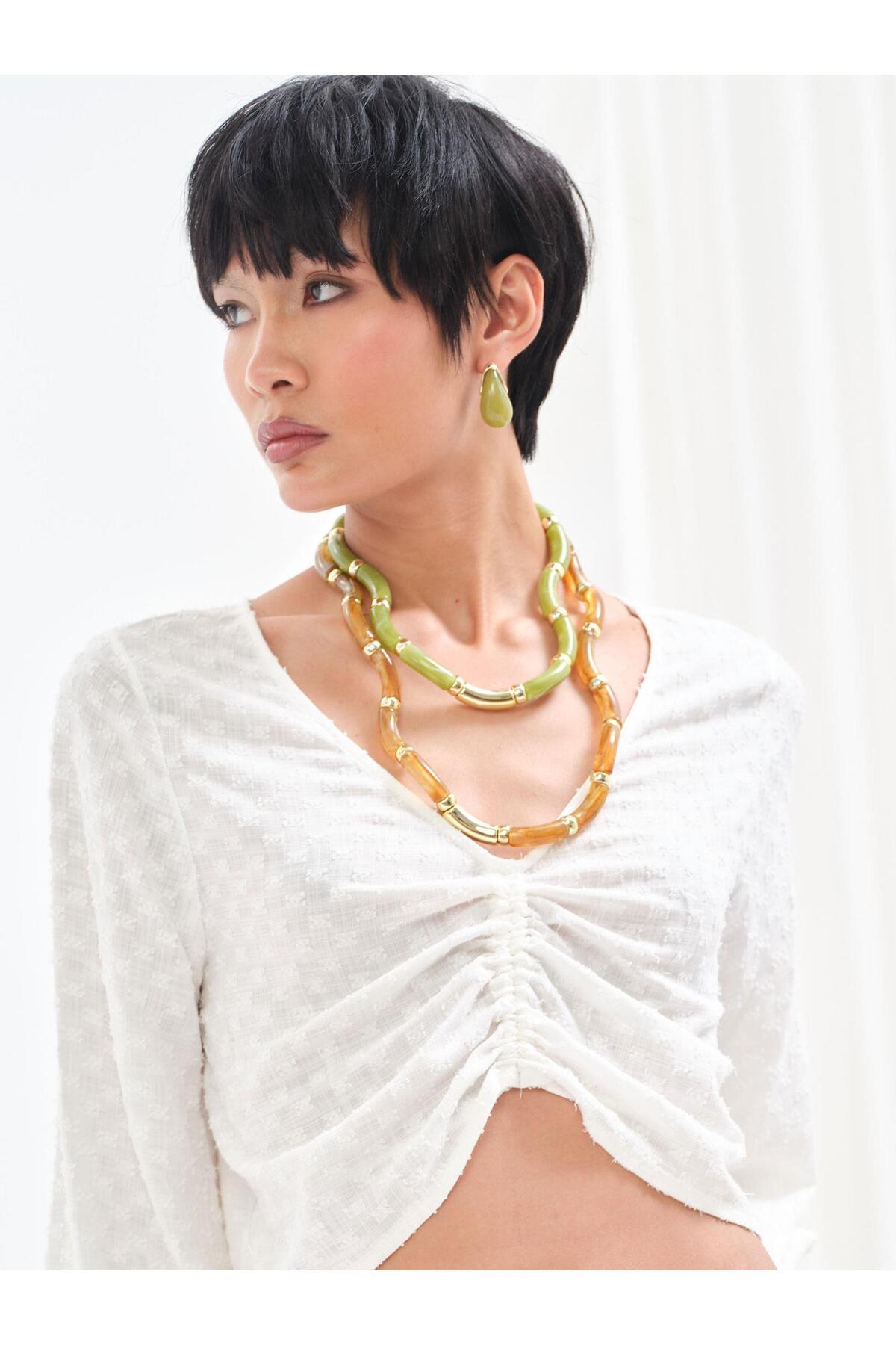 Gold Çerçeveli Kemik Damla Küpe - Yeşil Gold Çerçeveli Kemik Damla Küpe - Yeşil 25SL223025 تک سایز