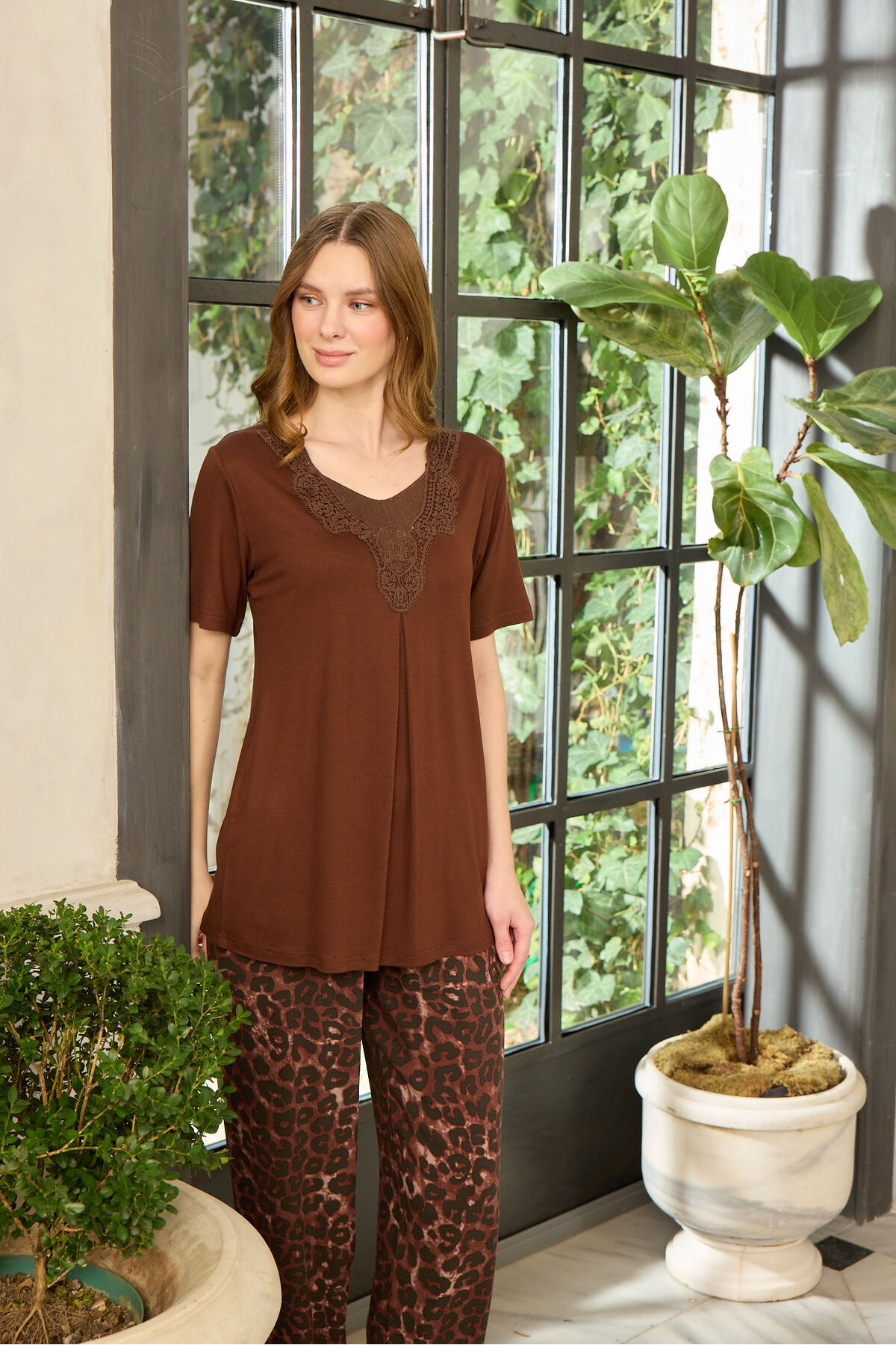 Bordo Üstü Ring Viskon Altı Dokuma Tığ Örgü Yaka Detaylı Kısa Kol Pijama Takım Bordo Üstü Ring Viskon Altı Dokuma Tığ Örgü Yaka Detaylı Kısa Kol Pijama Takım 2051 2XL