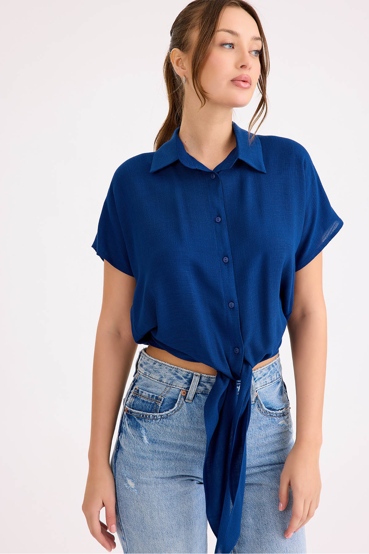 Beli Bağlamalı Kısa Kol Salaş Gömlek Beli Bağlamalı Kısa Kol Salaş Gömlek 25-353 XL