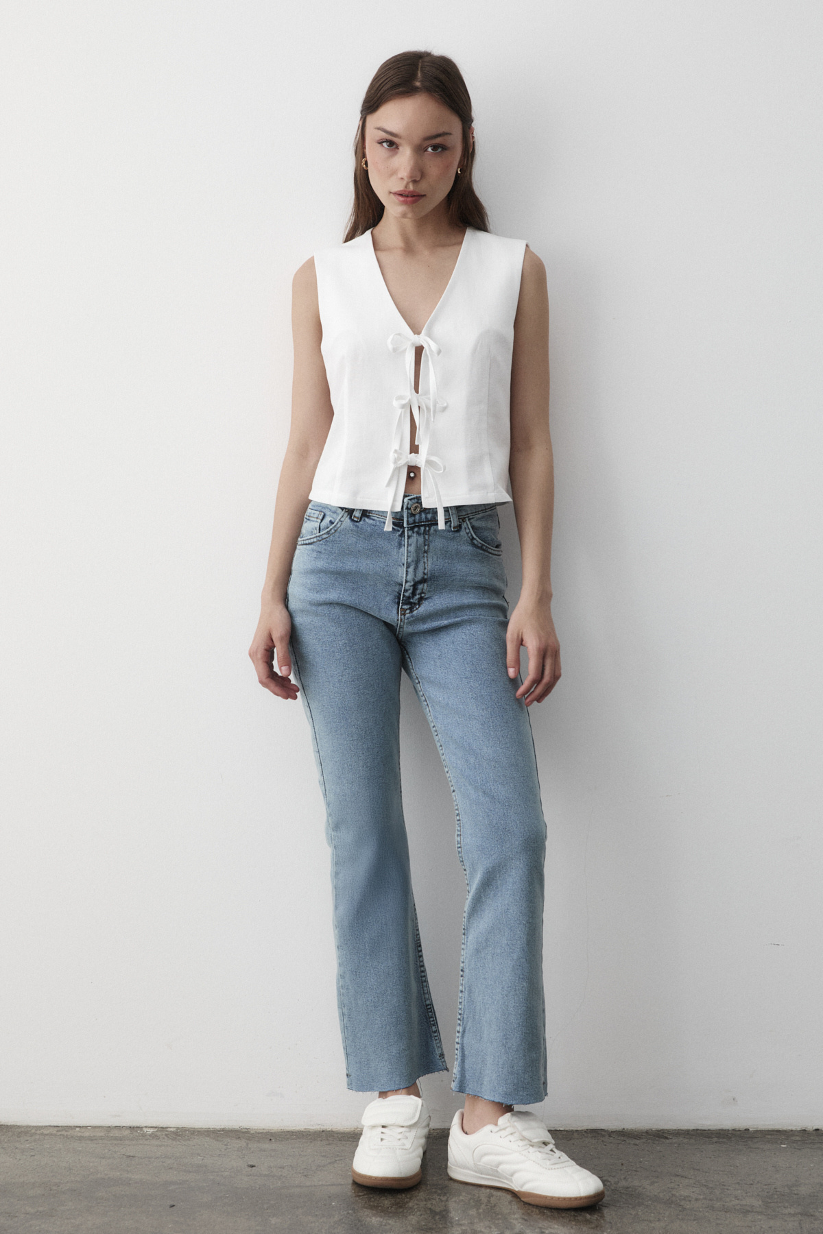 Kadın Kahve Yüksek Bel Geniş Paça Jean Pantolon Kadın Kahve Yüksek Bel Geniş Paça Jean Pantolon 6524 2XL