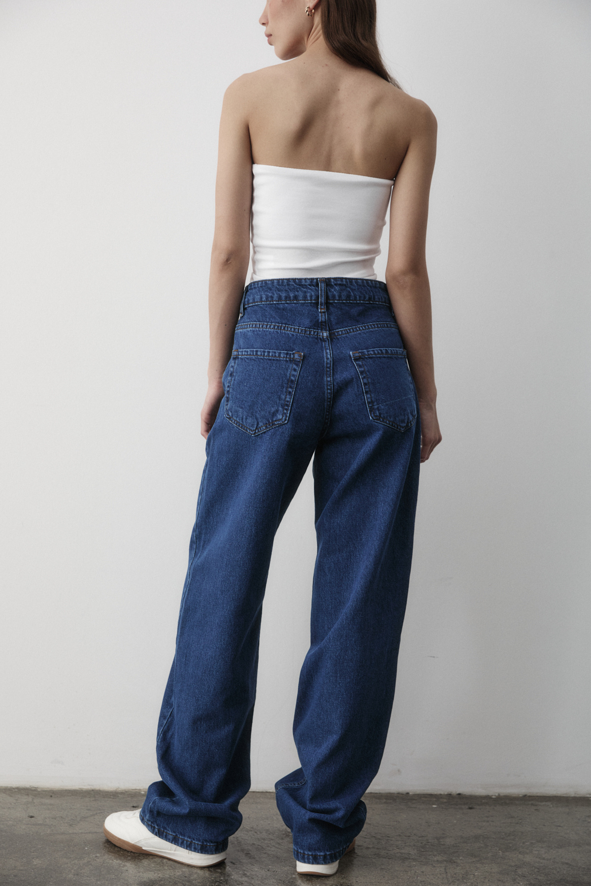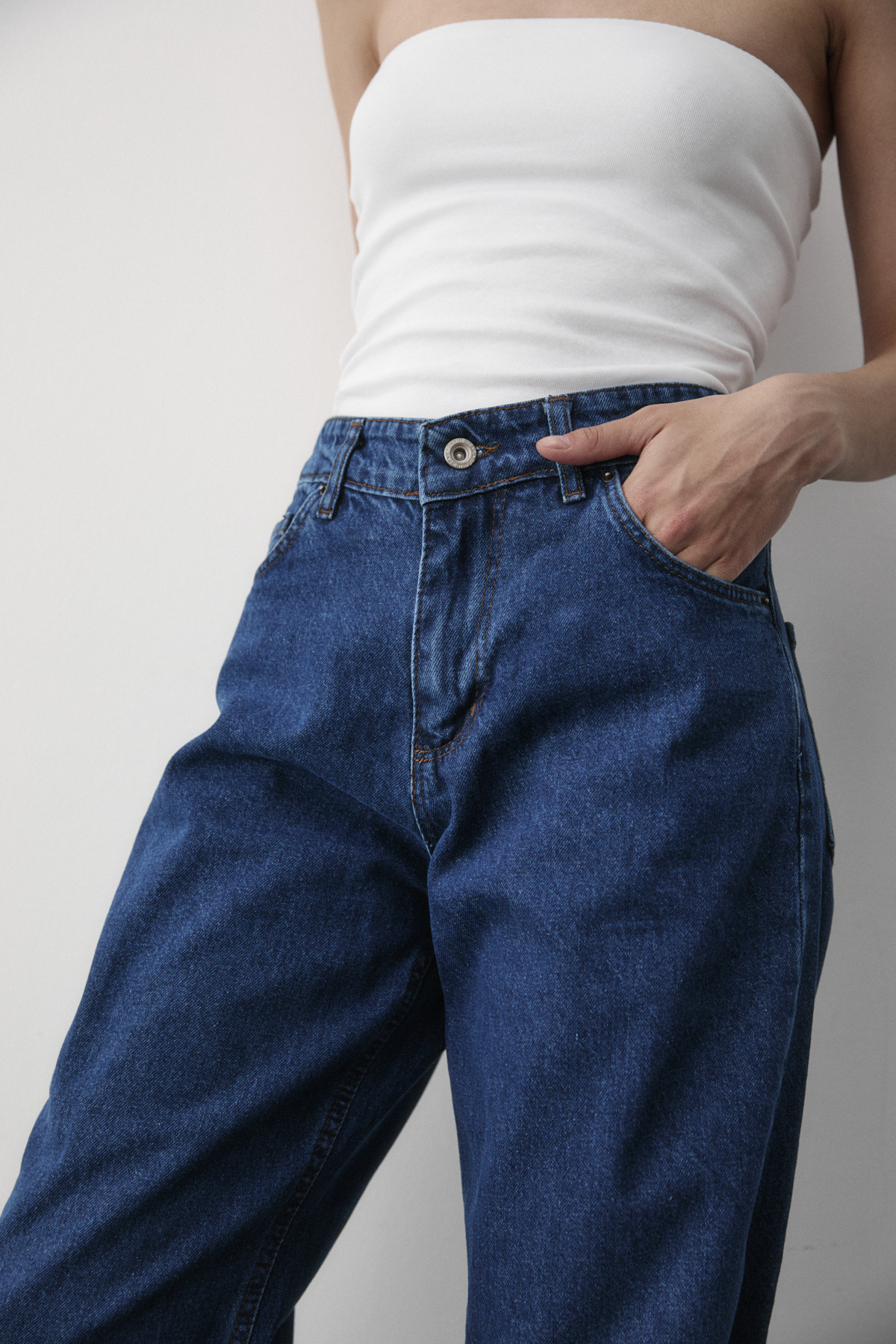 Kadın Mavi Yüksek Bel Geniş Paça Jean Pantolon Kadın Mavi Yüksek Bel Geniş Paça Jean Pantolon 6524 2XL