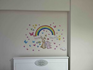 Gökkuşağı Sevimli Tavşanlar Yıldızlar Ve Kalpler Çocuk Odası Duvar Sticker Gökkuşağı Sevimli Tavşanlar Yıldızlar Ve Kalpler Çocuk Odası Duvar Sticker STCK42 120 x 45
