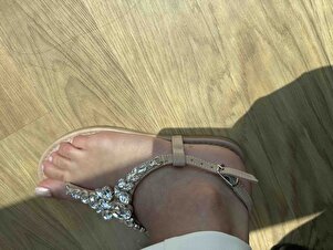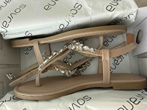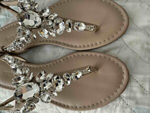 Taş Detaylı Parmak Arası Sandalet Ten Taş Detaylı Parmak Arası Sandalet Ten A56 40