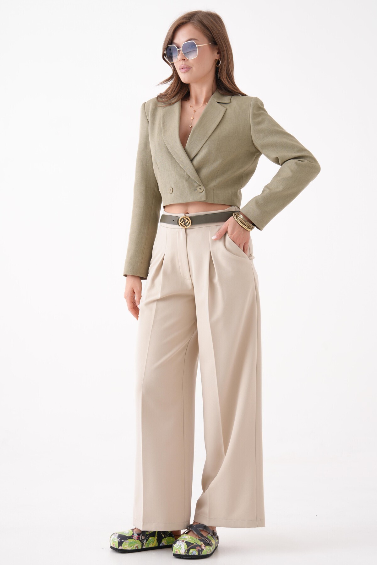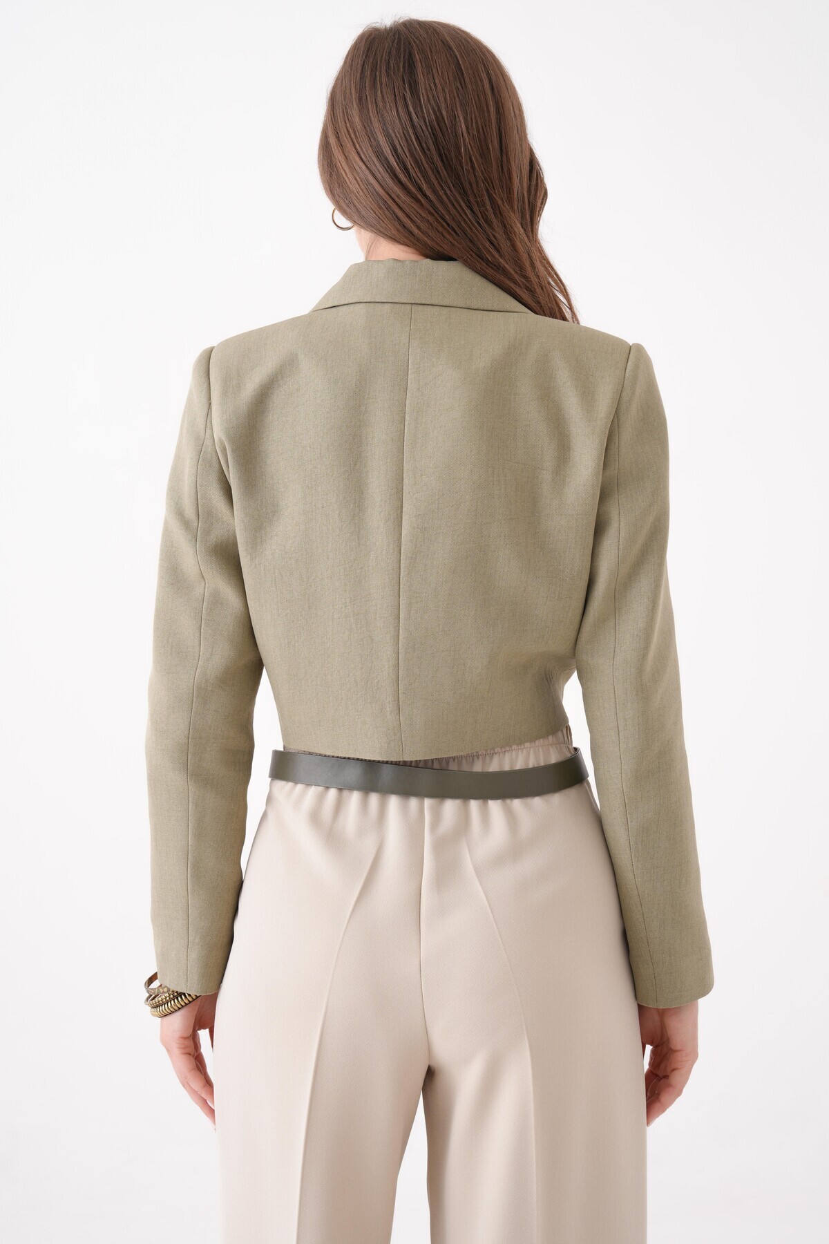 Haki Kruvaze Crop Blazer Ceket Haki Kruvaze Crop Blazer Ceket SD/MYAZ23CK0136 44