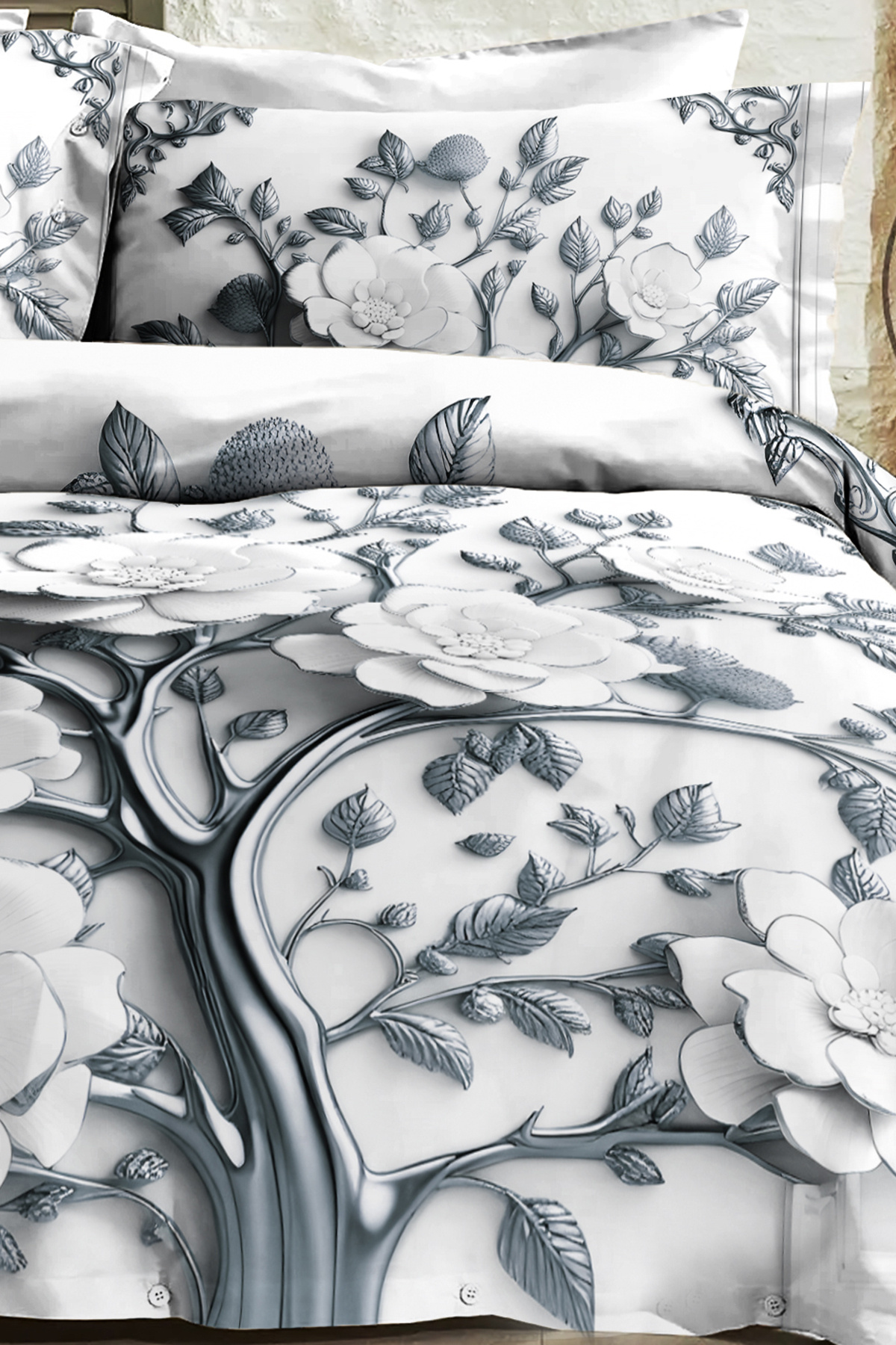 %100 PAMUK Ranforce Çeyizlik Luxury 5D Dijital Çift Kişilik Nevresim Takımı Silver %100 PAMUK Ranforce Çeyizlik Luxury 5D Dijital Çift Kişilik Nevresim Takımı Silver MONOHOME82396 تک سایز