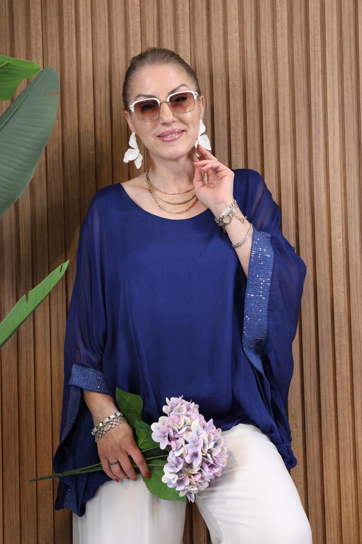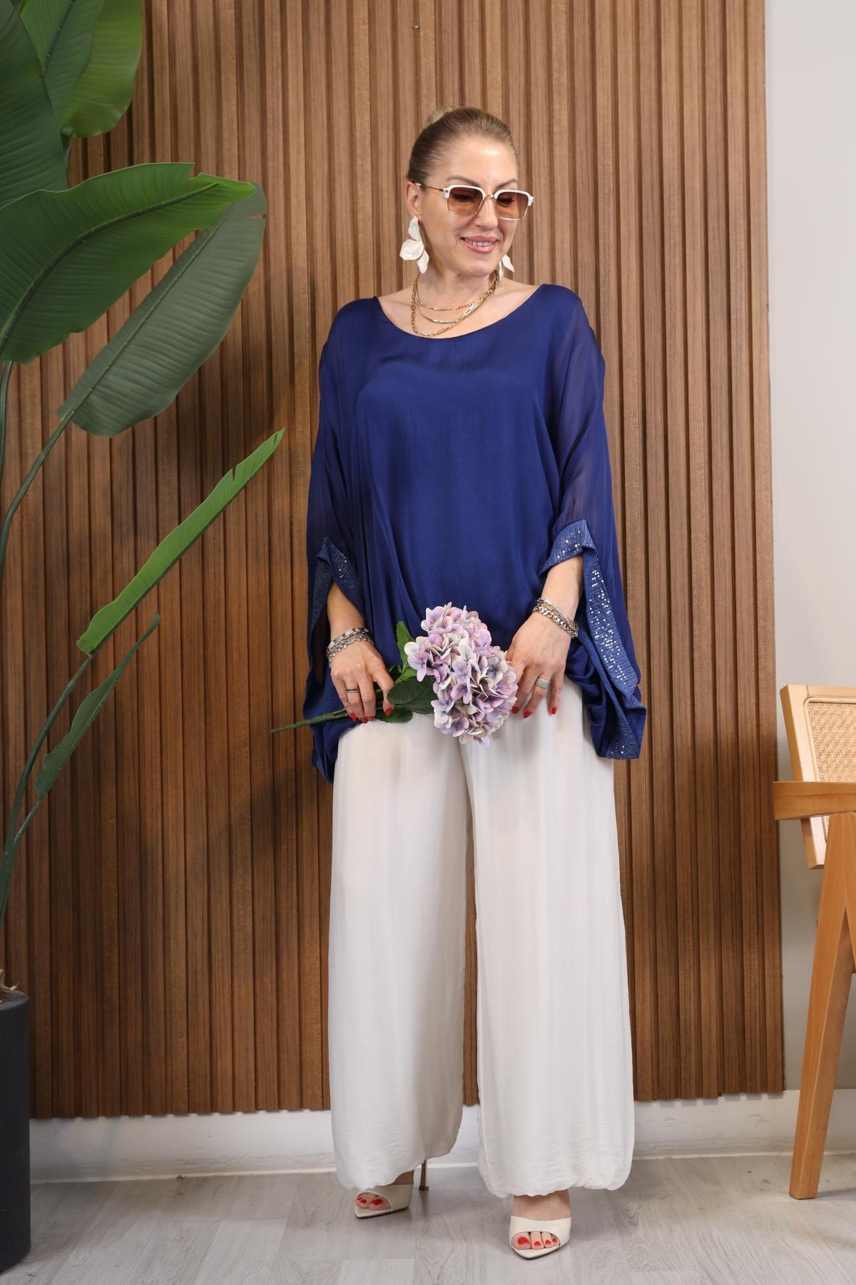 İthal İpek Kol Pul Detay Parlement Mavi Bluz İthal İpek Kol Pul Detay Parlement Mavi Bluz Mislina-1378 Standart