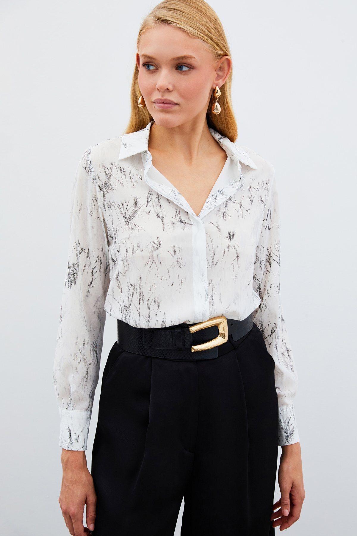 Yırtmaç Detaylı Gömlek - Ekru Yırtmaç Detaylı Gömlek - Ekru STN139KGO1808 42