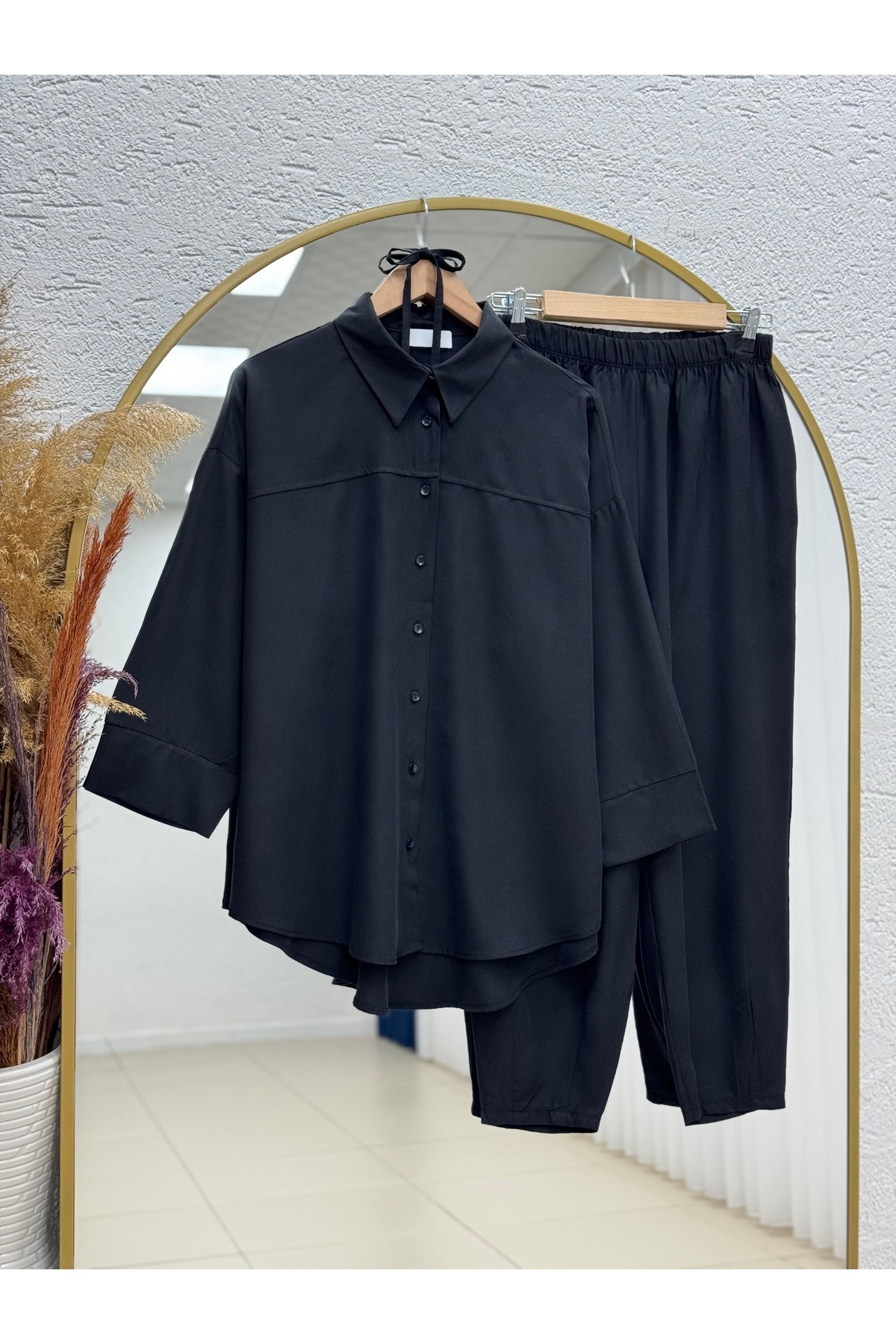 Gamze Altı Çizgili Pantolonlu Takım-MF1741 Siyah Gamze Altı Çizgili Pantolonlu Takım-MF1741 Siyah HAN24KEbr00000014ER L