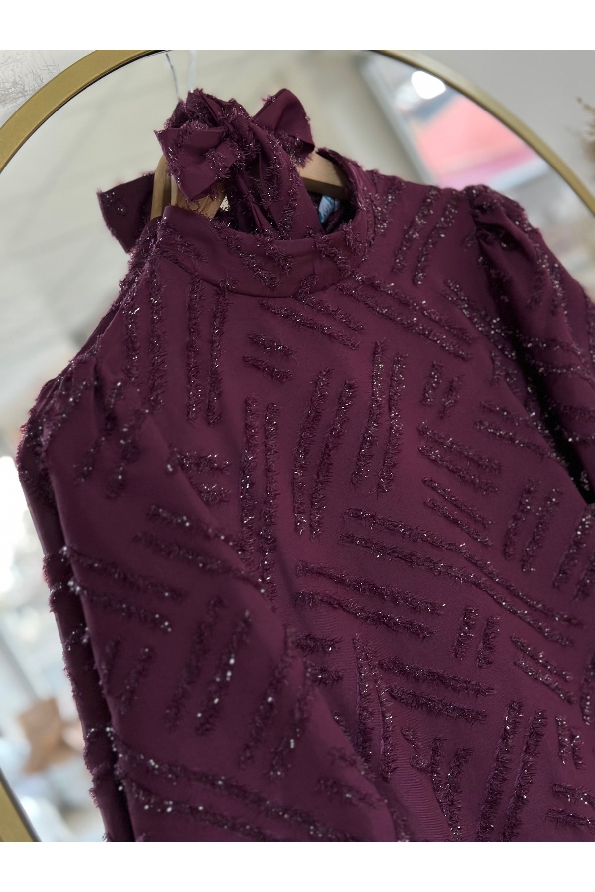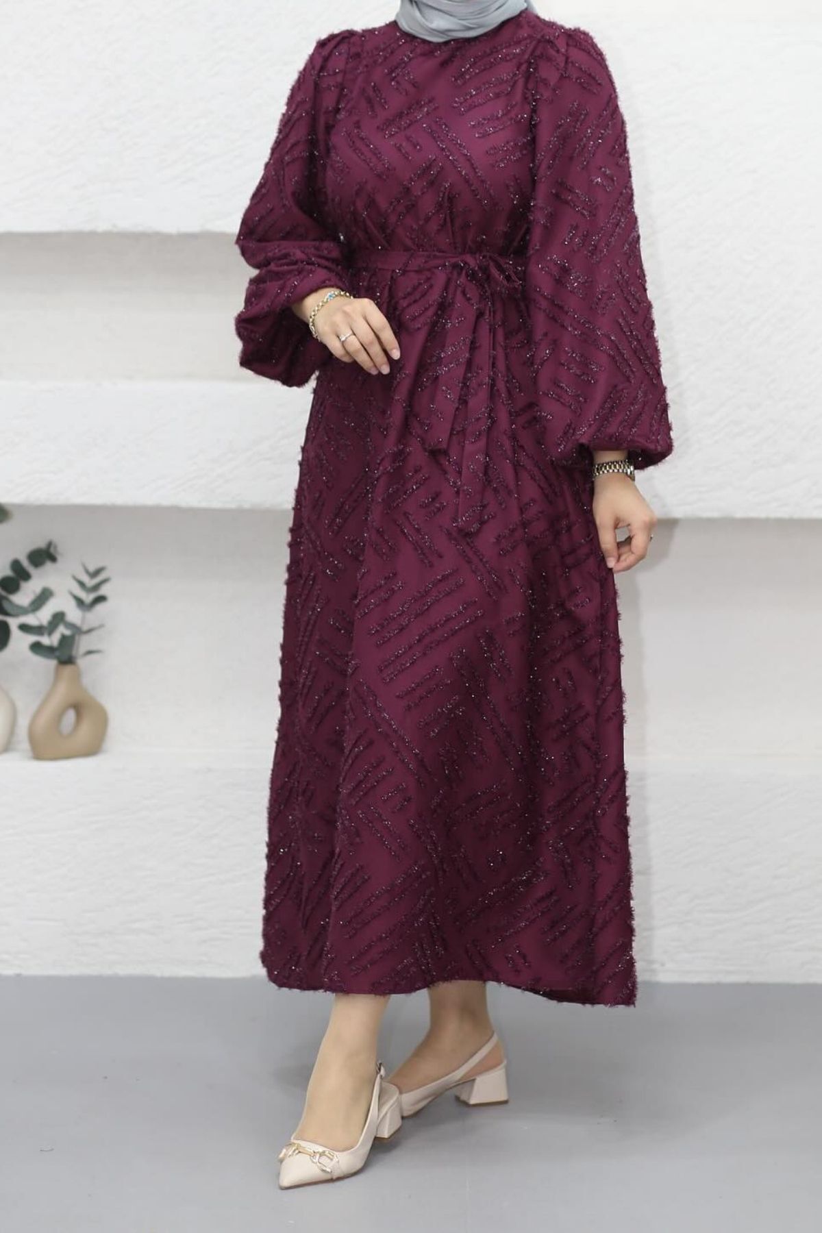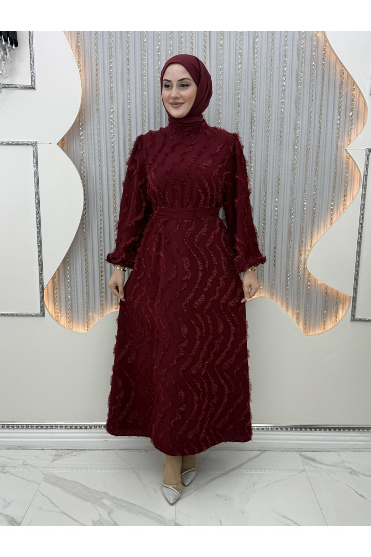 İmran İşlemeli Ve Simli Kuşaklı Elbise-PA9564 Bordo İmran İşlemeli Ve Simli Kuşaklı Elbise-PA9564 Bordo HAN25KEbr00000066ER 46