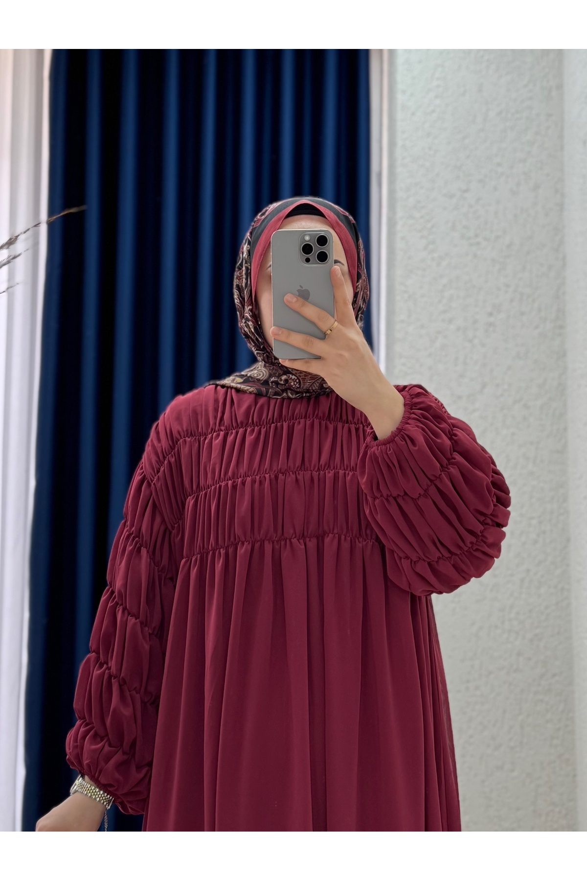 Serira Pileli Şifon Elbise-PA9685 Bordo Serira Pileli Şifon Elbise-PA9685 Bordo HAN25YEbr00000400ER Standart