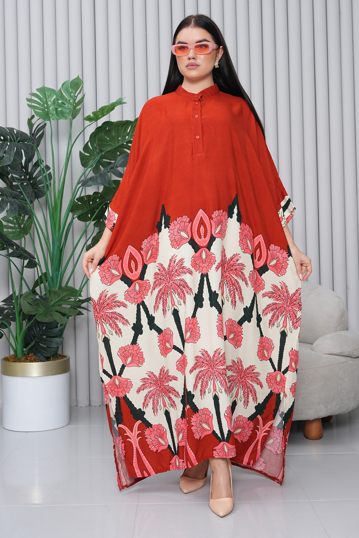 Kadın Desenli Oversize Uzun Viskon Elbise Kahve Abaya Tesettür Elbise Kadın Desenli Oversize Uzun Viskon Elbise Kahve Abaya Tesettür Elbise 4004 Standart