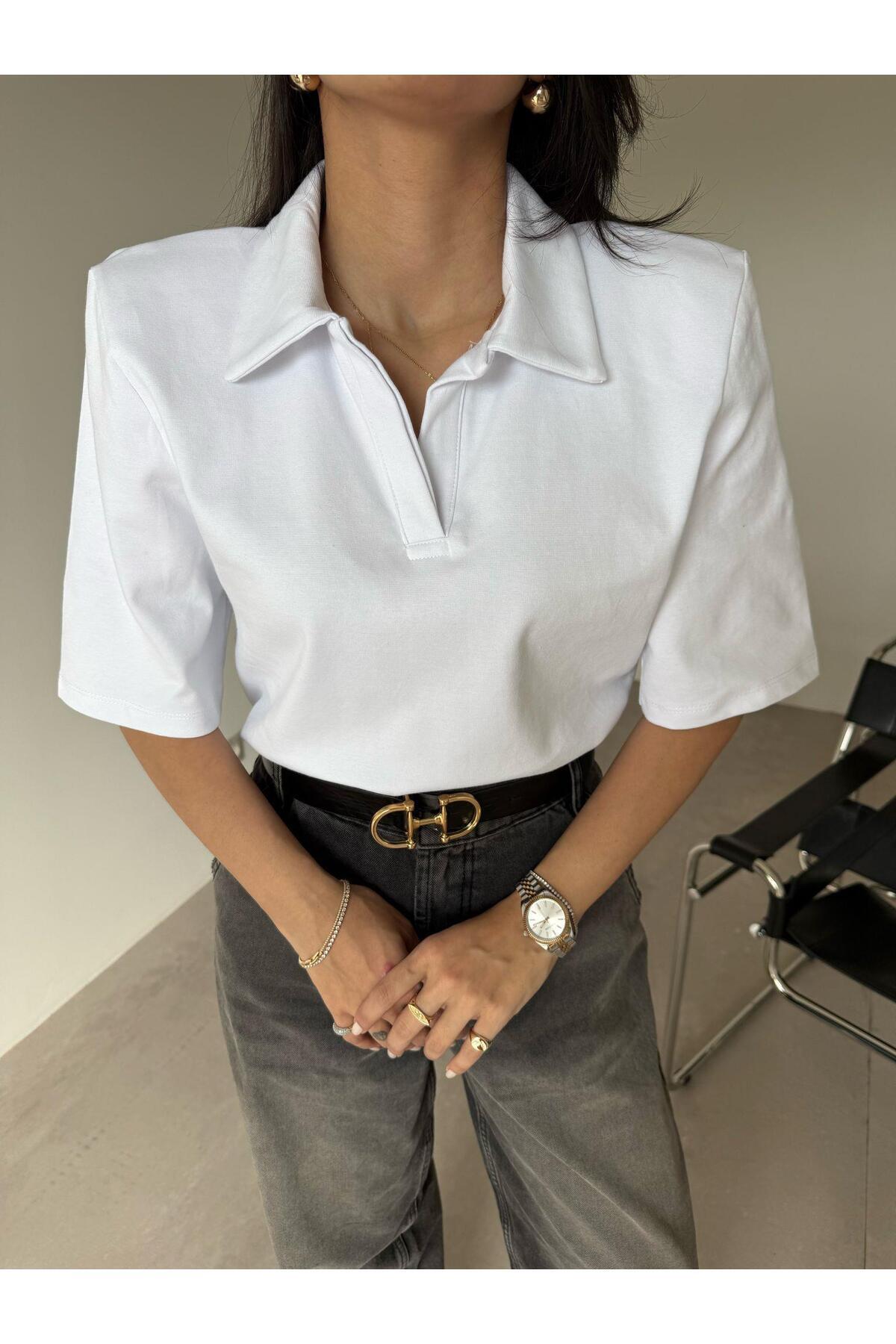 Beyaz Polo Yaka Vatkalı Tişört Beyaz Polo Yaka Vatkalı Tişört TX99F57E7B24723 L