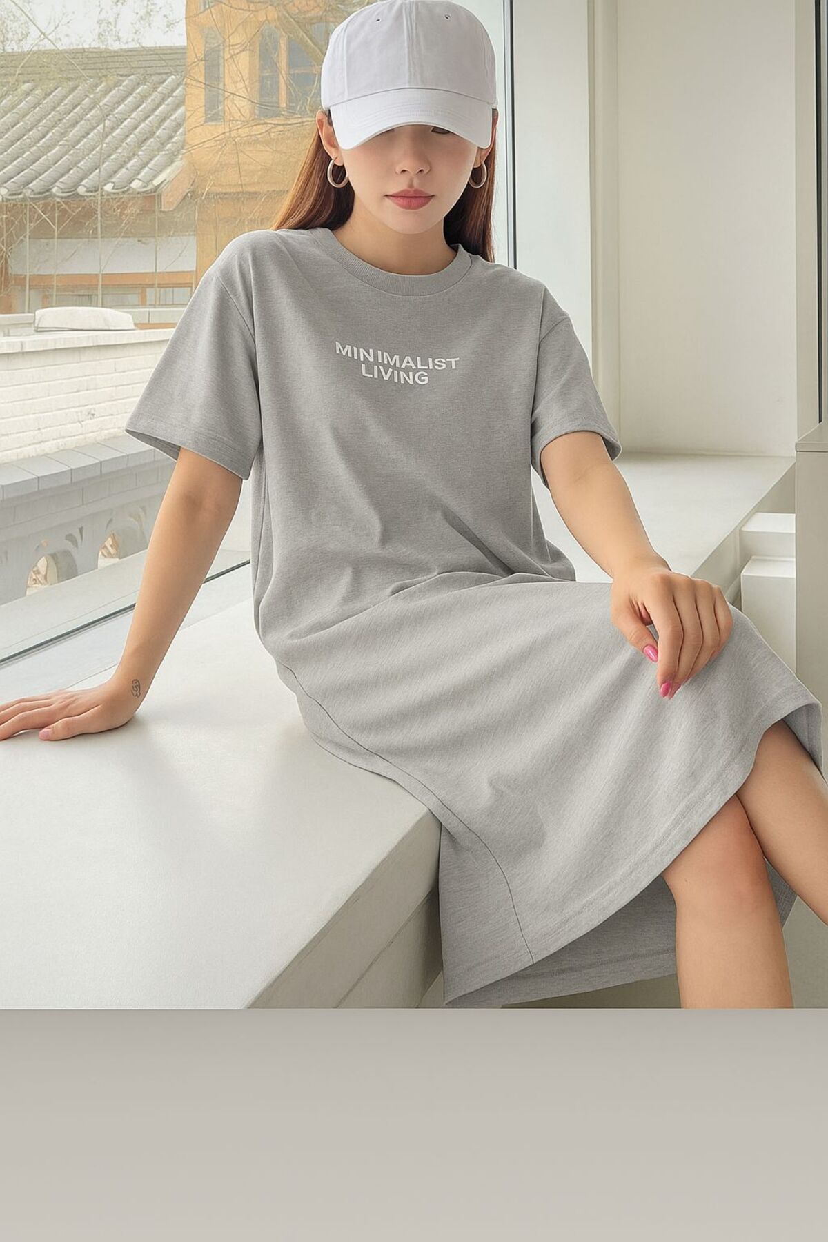 Kadın Minimalist Baskılı T-shirt Bisiklet Yaka Elbise/tunik Kadın Minimalist Baskılı T-shirt Bisiklet Yaka Elbise/tunik t-shirtelbiseler 2XL