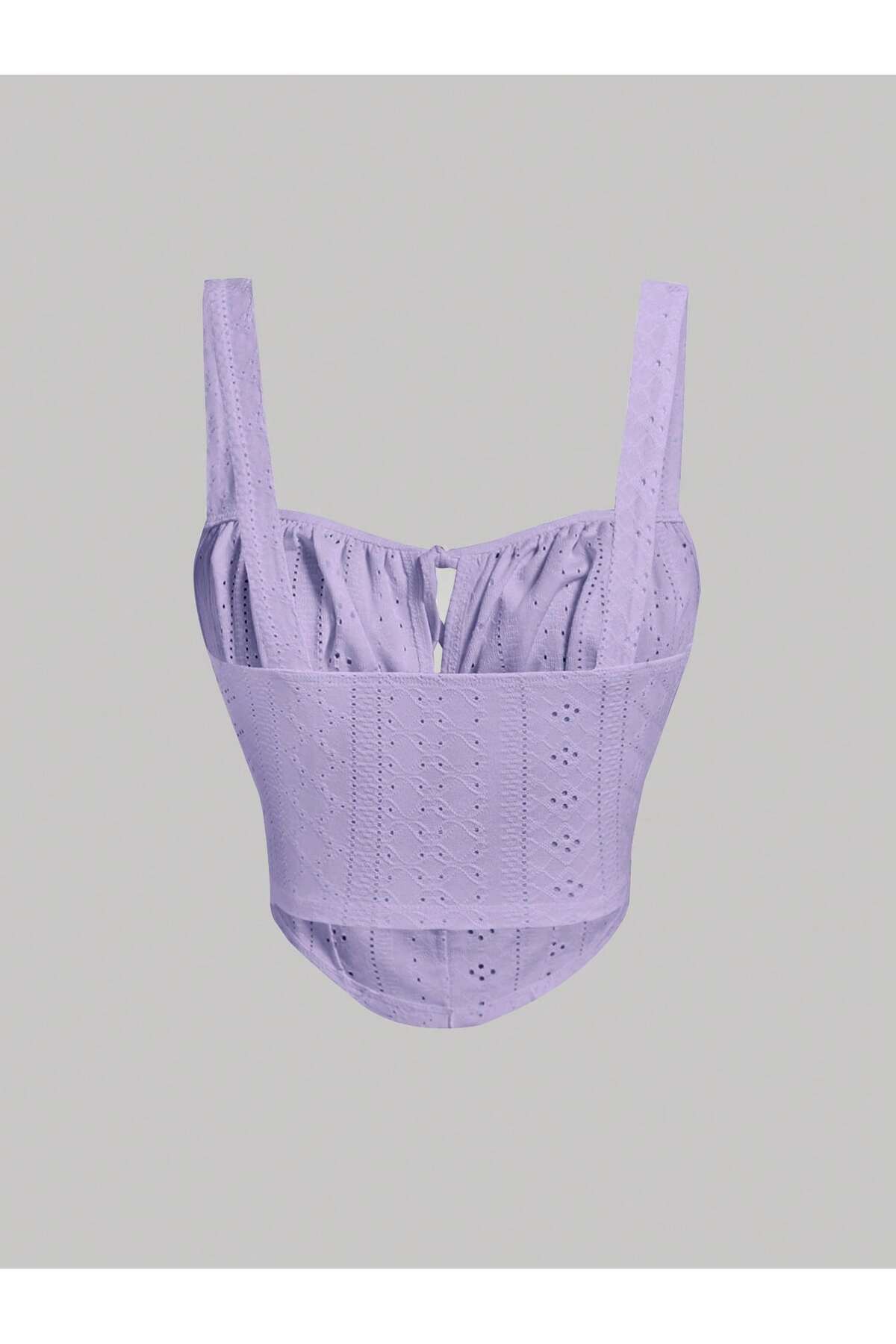 Lila Nakış Desenli göğüs Dekolteli Geniş Askılı Üst Crop Lila Nakış Desenli göğüs Dekolteli Geniş Askılı Üst Crop FLOWER3500 XL