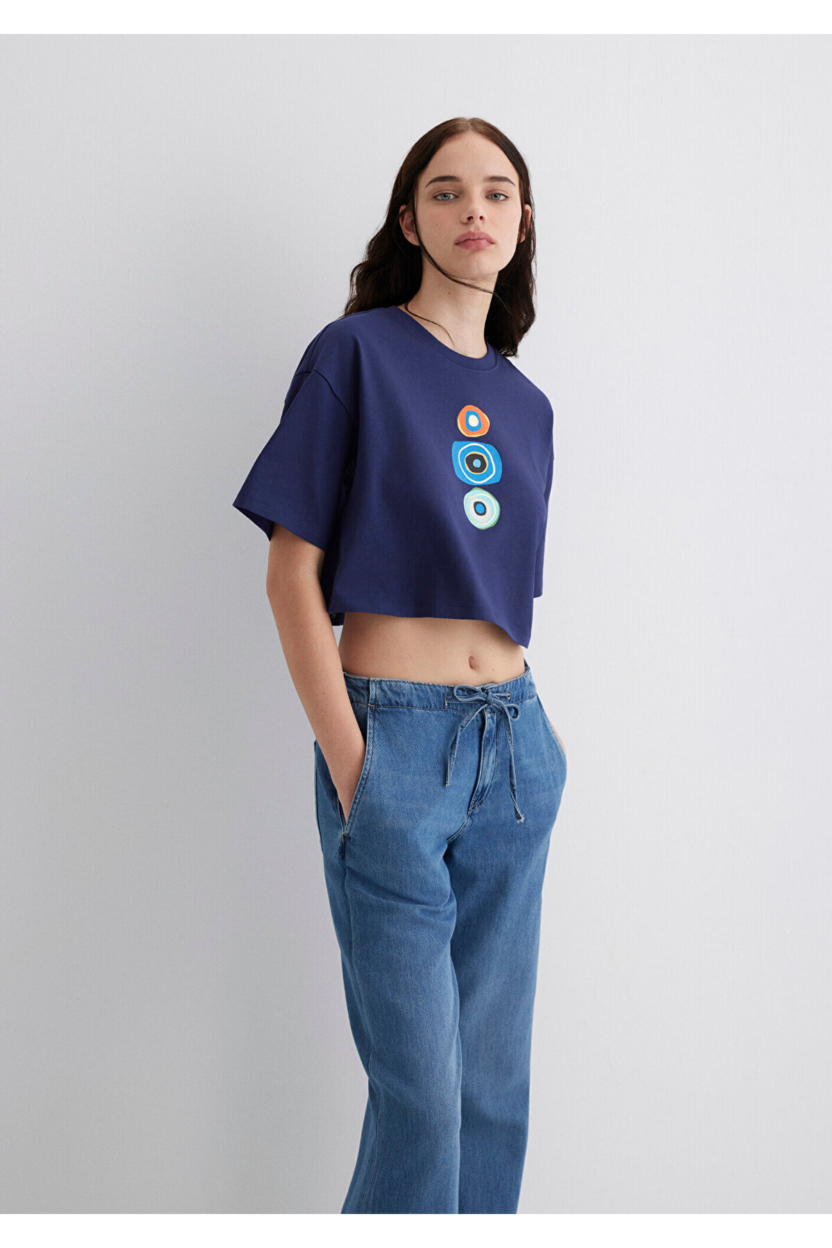 Nazar Boncuğu Baskılı Lacivert Tişört Crop / Kısa Kesim 1613443-70495 Nazar Boncuğu Baskılı Lacivert Tişört Crop / Kısa Kesim 1613443-70495 M