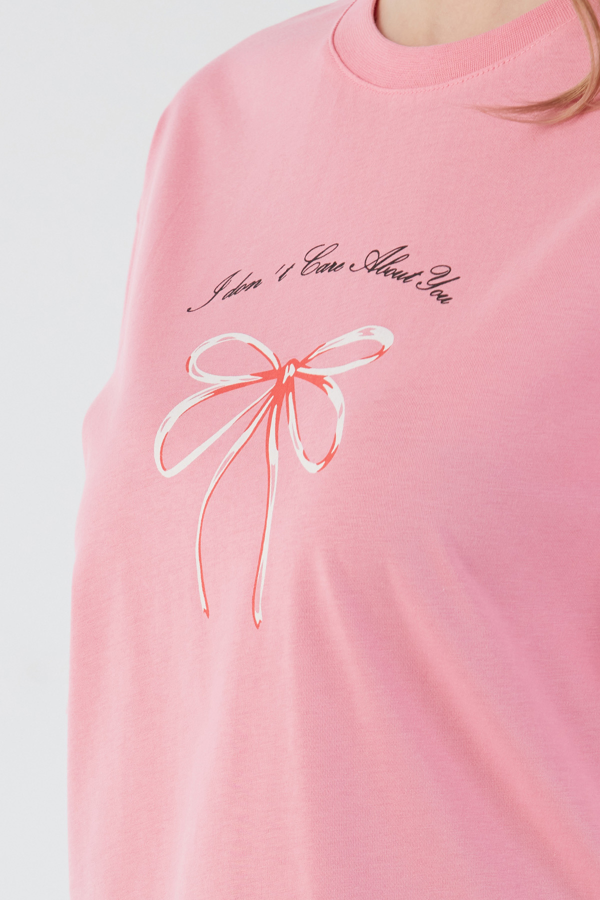 Kurdele Ve Yazı Baskılı Oversize Tişört Kurdele Ve Yazı Baskılı Oversize Tişört 25YGB4430128111 M/L