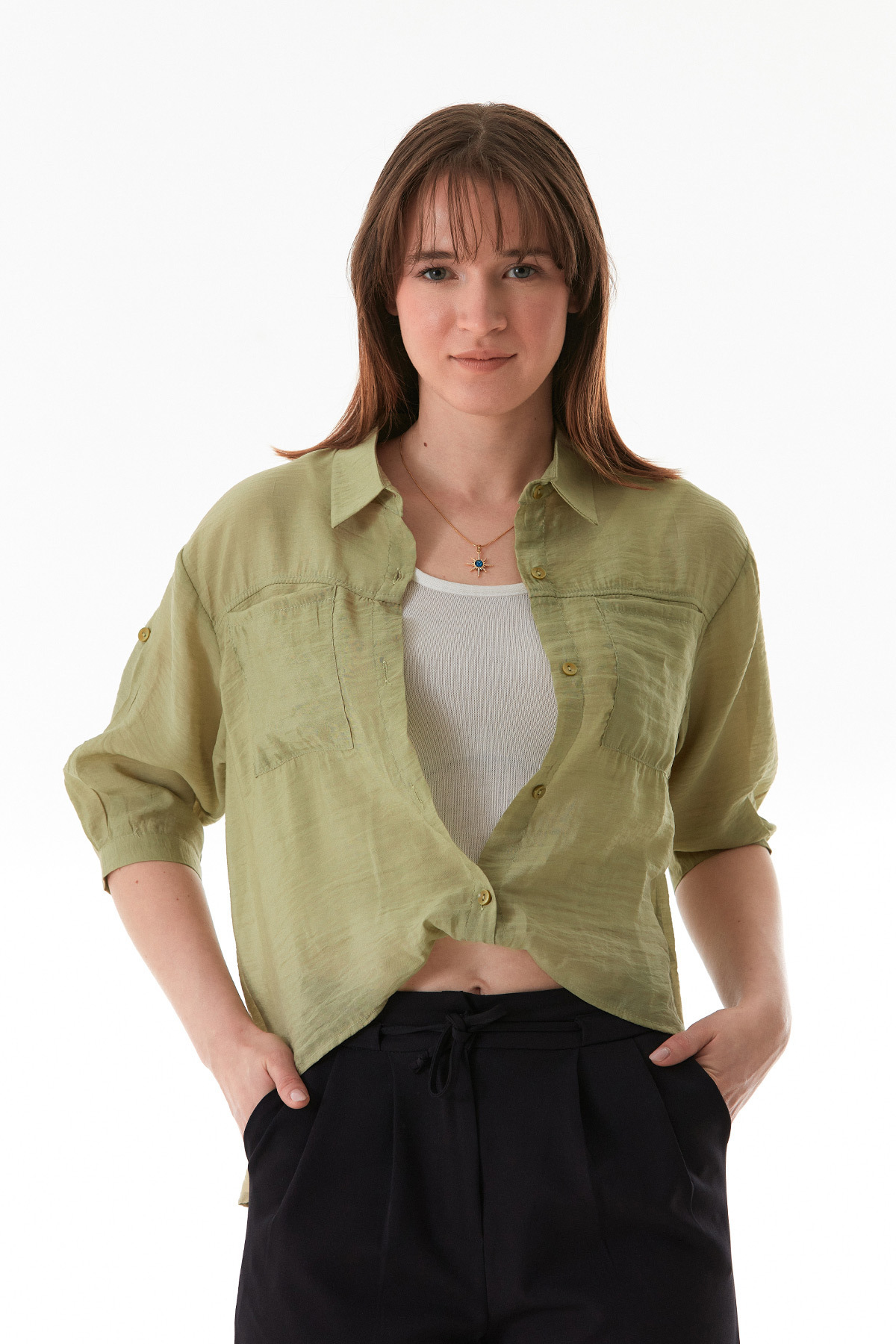 Basic Body Detaylı Kolyeli Gömlek Basic Body Detaylı Kolyeli Gömlek 25YGB8008129461 L