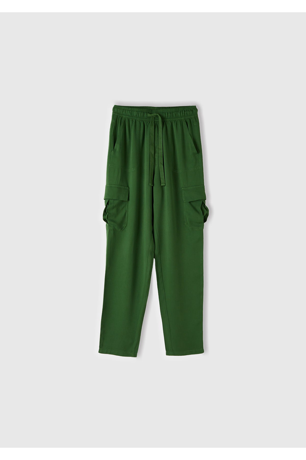 Kadın Yeşil %100 Keten Desenli Beli Lastikli Pantolon Kadın Yeşil %100 Keten Desenli Beli Lastikli Pantolon 125P4KPRDF079 XL