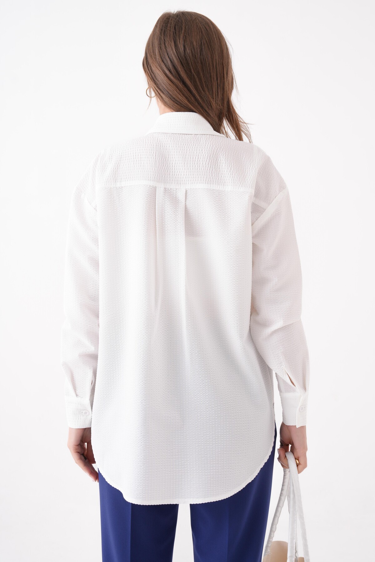 Beyaz Bürümcük Detaylı Çizgili Gömlek Beyaz Bürümcük Detaylı Çizgili Gömlek SD/MYAZ23GO0013 46