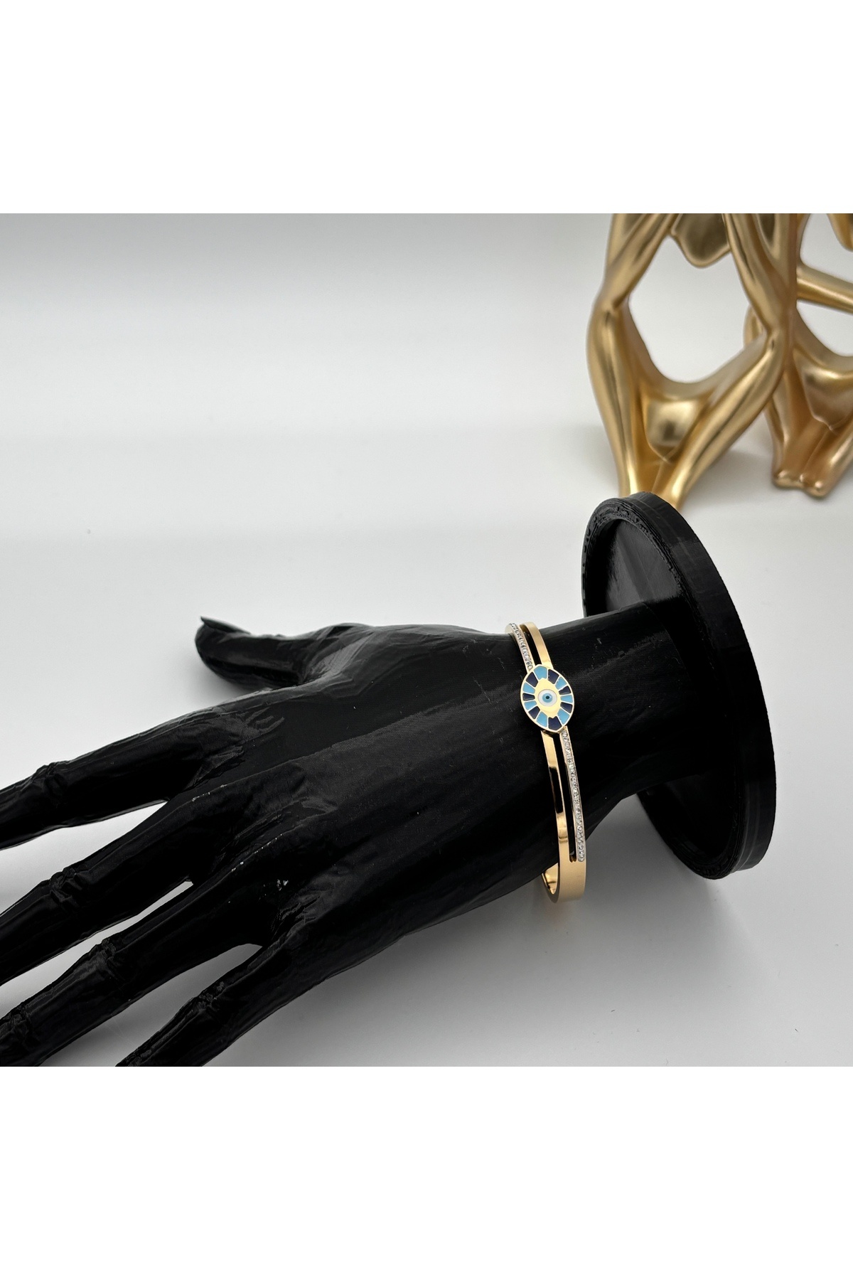 Nazar Boncuğu Taşlı Kelepçe Gümüş Renk 925 Ayar Gümüş Bileklik Nazar Boncuğu Taşlı Kelepçe Gümüş Renk 925 Ayar Gümüş Bileklik KLPÇEGMŞ 64 mm