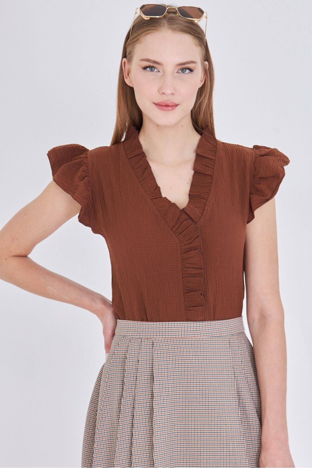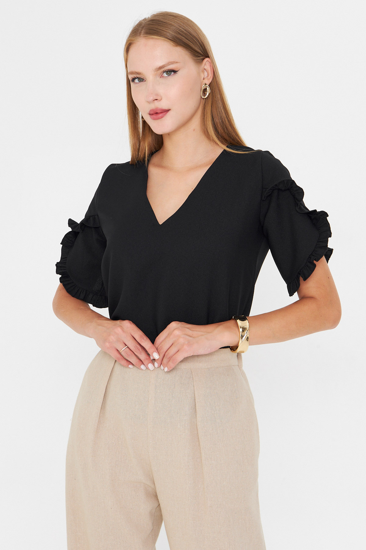 Kadın Siyah Yakası Ve Kolları Fırfırlı Bluz ARM-25Y001063 Kadın Siyah Yakası Ve Kolları Fırfırlı Bluz ARM-25Y001063 50