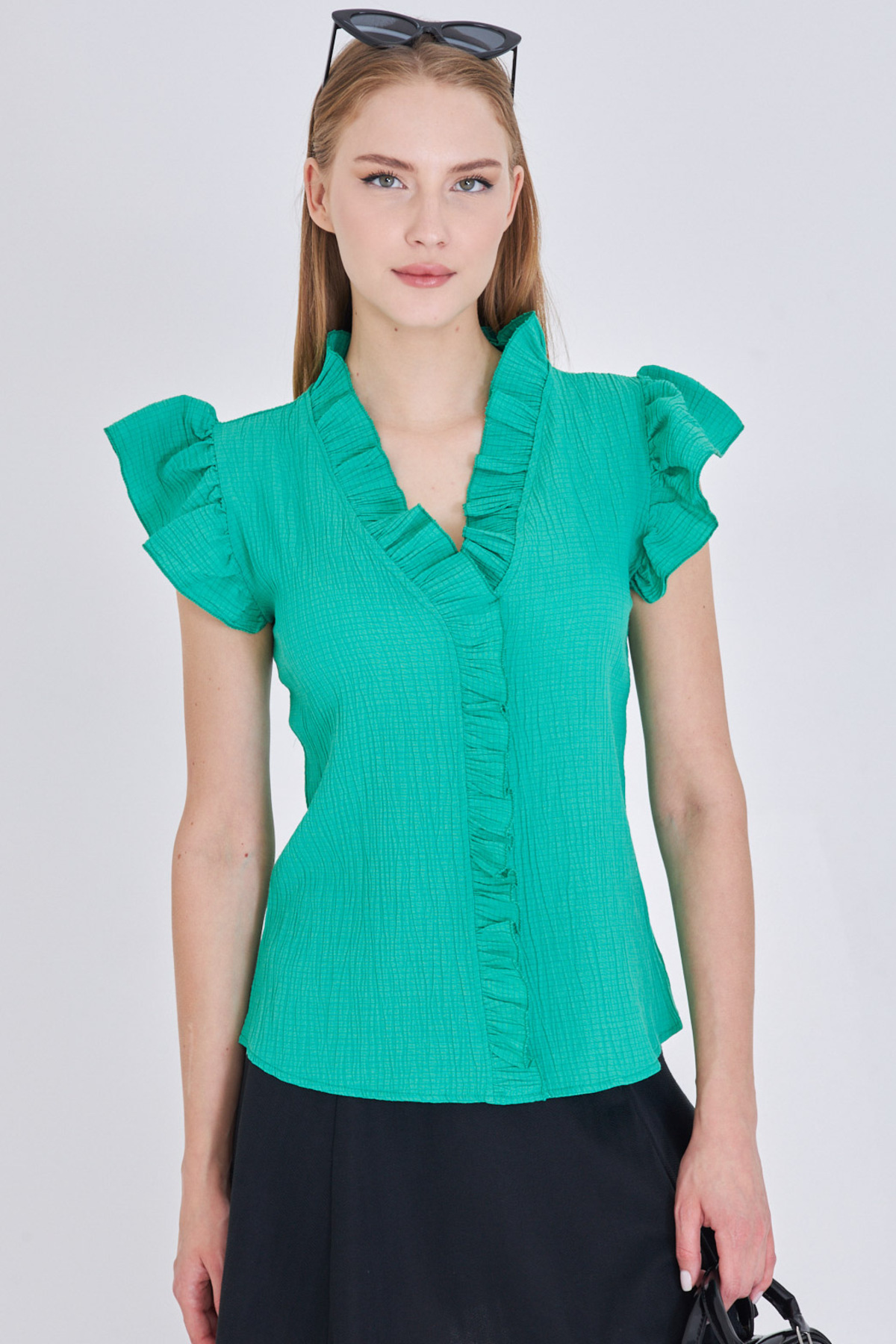 Kadın Yeşil Yakası Ve Kolları Fırfırlı Bluz ARM-25Y001063 Kadın Yeşil Yakası Ve Kolları Fırfırlı Bluz ARM-25Y001063 50