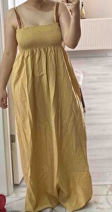 Kadın Sarı Askıları Bağcıklı Göğsü Gipe Lastikli Uzun Elbise ARM-25Y001069 Kadın Sarı Askıları Bağcıklı Göğsü Gipe Lastikli Uzun Elbise ARM-25Y001069 L/XL